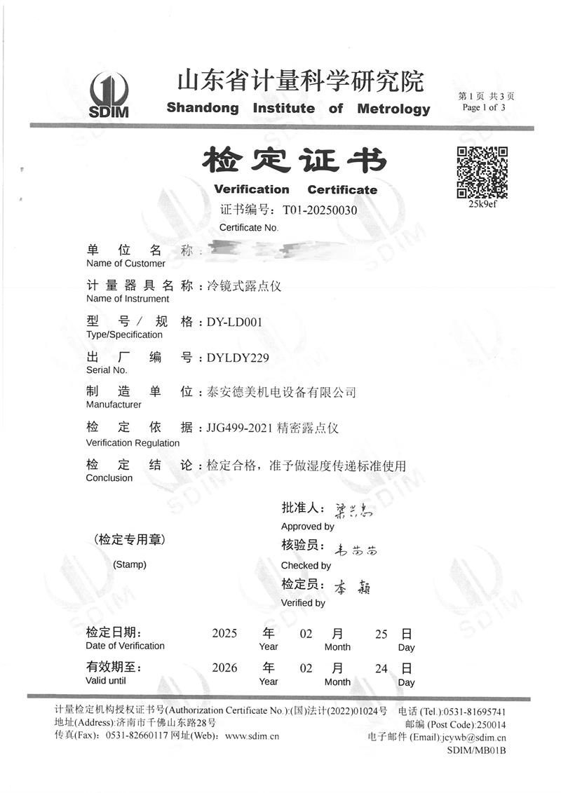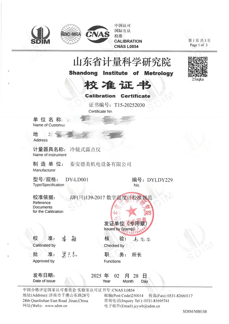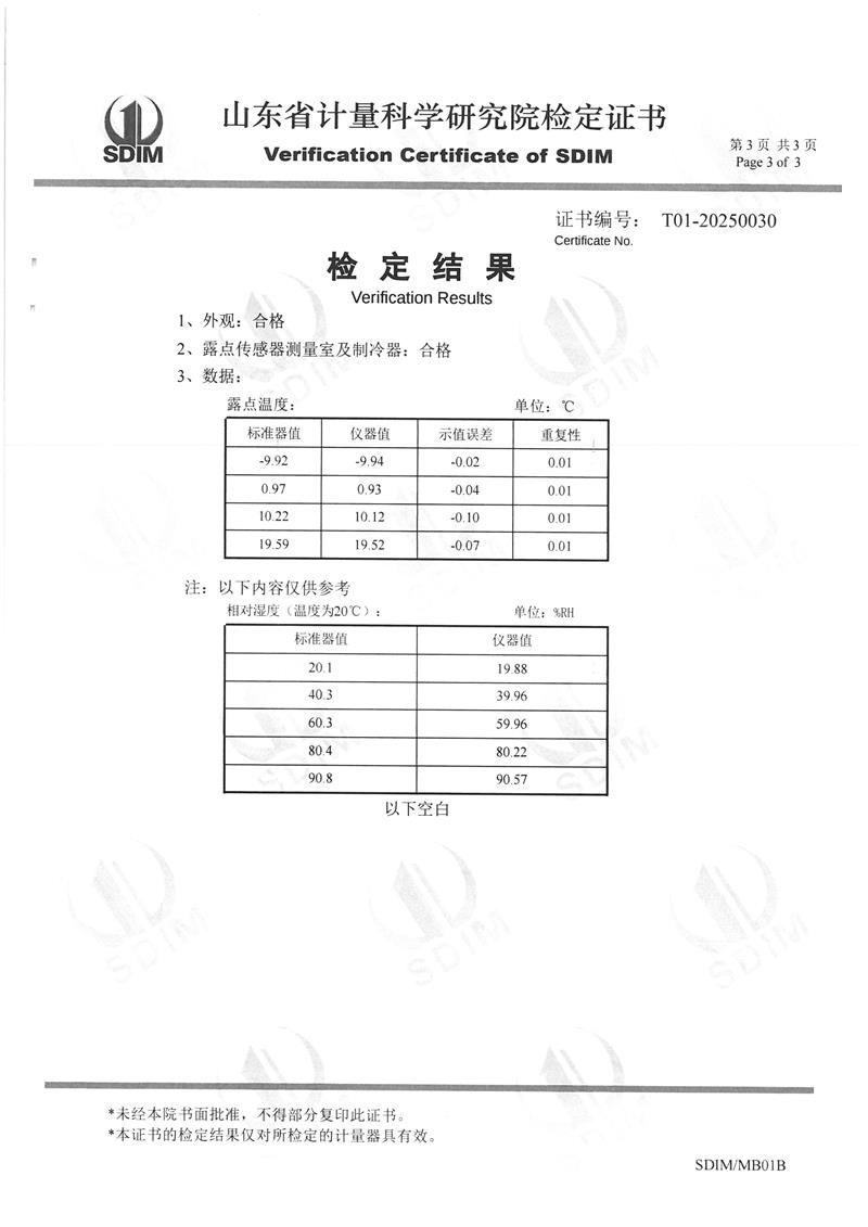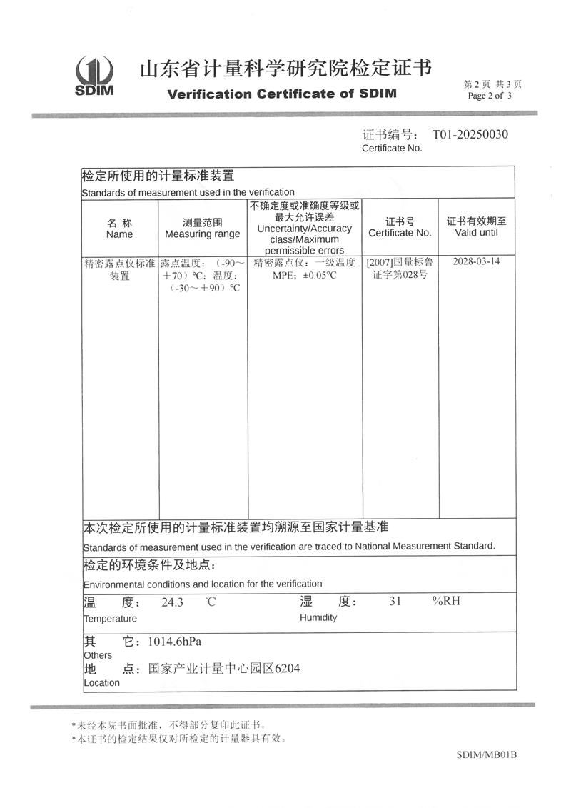 露點儀檢定、校準證書 2025-3-8 本文被閱讀 3727 次