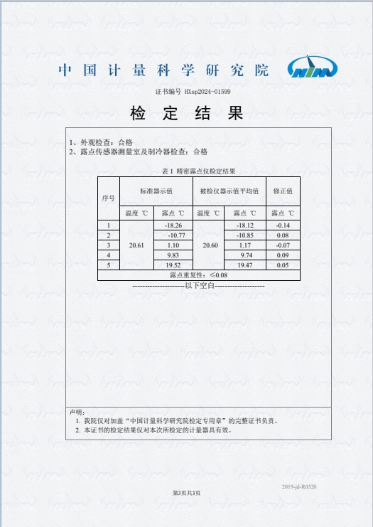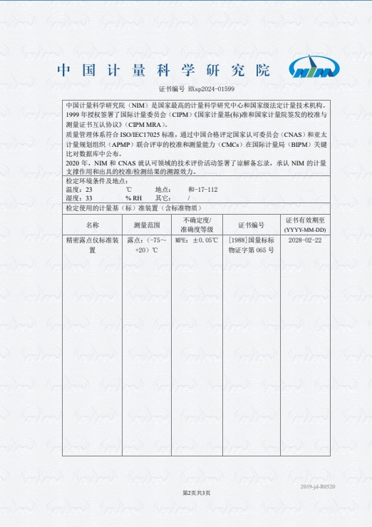 冷鏡式露點儀(-20-95℃)檢定證書 2024-6-17 本文被閱讀 6655 次