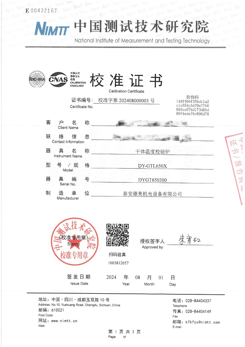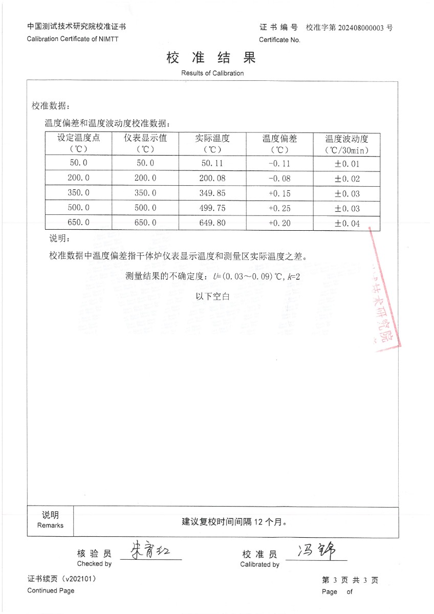 上一條:干體爐299(室溫+5℃~650℃)校準(zhǔn)證書 | 下一條:超低溫面源黑體爐(-40-80℃)校準(zhǔn)證書 |