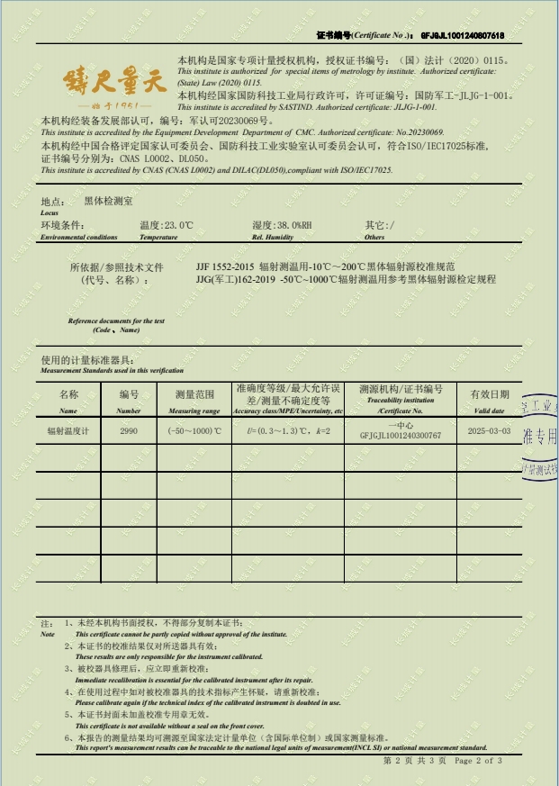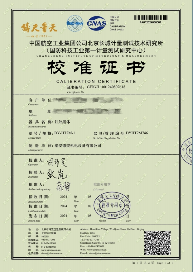 紅外黑體,室溫+5-300℃校準證書 2024-8-29 本文被閱讀 7650 次