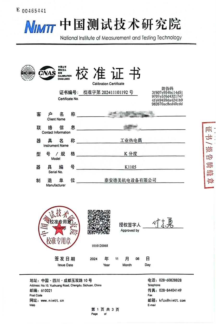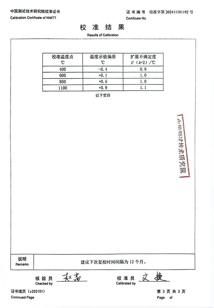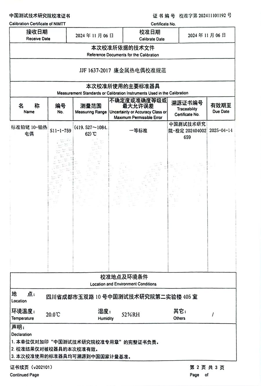 K分度熱電偶校準(zhǔn)證書 2024-11-9 本文被閱讀 6768 次