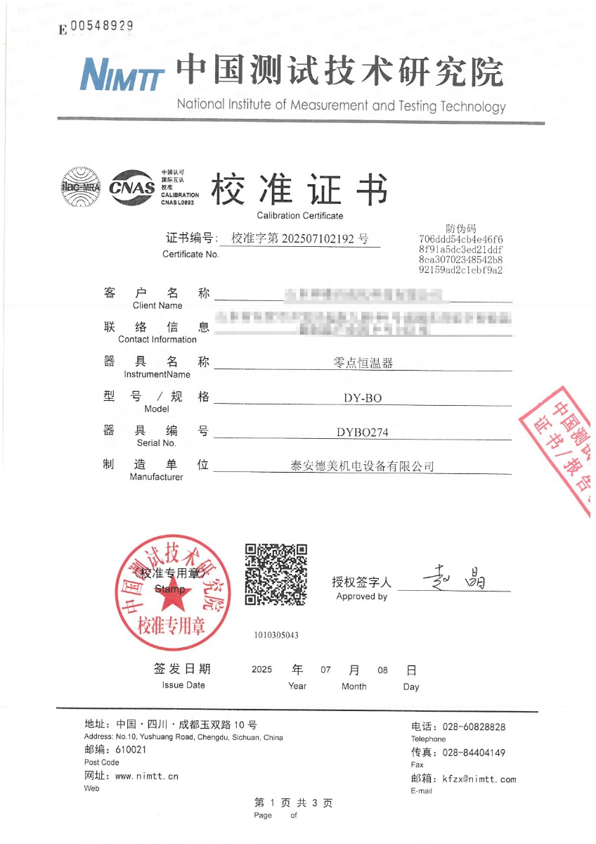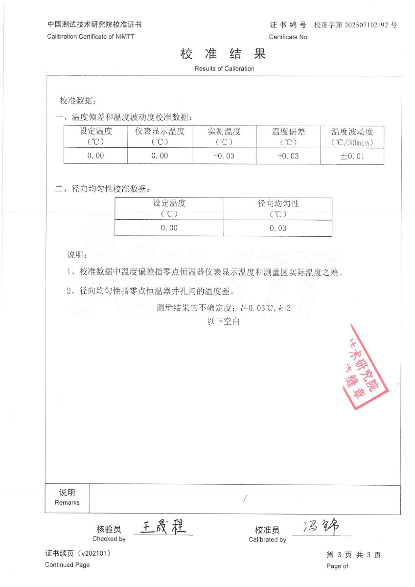 零點恒溫器校準證書 2025-7-10 本文被閱讀 2090 次