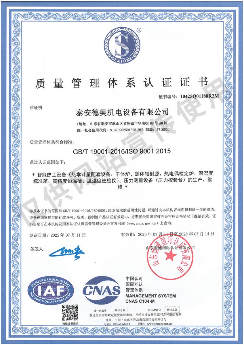 質(zhì)量管理體系認證證書 2025-7-12 本文被閱讀 2616 次