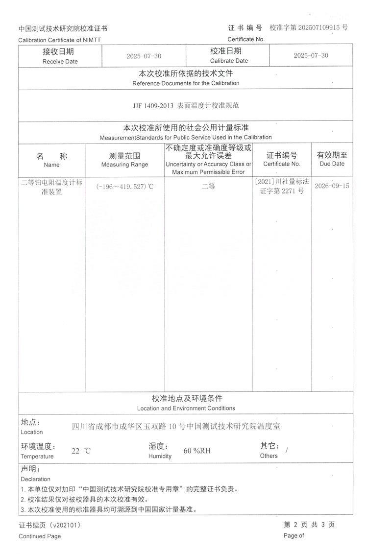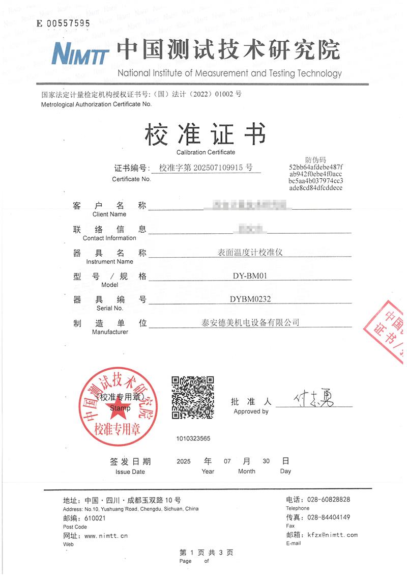 表面溫度計(jì)校準(zhǔn)儀(40-400℃)校準(zhǔn)證書 2025-8-6 本文被閱讀 1627 次