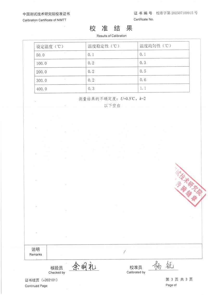 上一條:高精度低溫黑體(-10-100℃)校準(zhǔn)證書下一條:超低溫面源黑體爐(-40-80℃)校準(zhǔn)證書