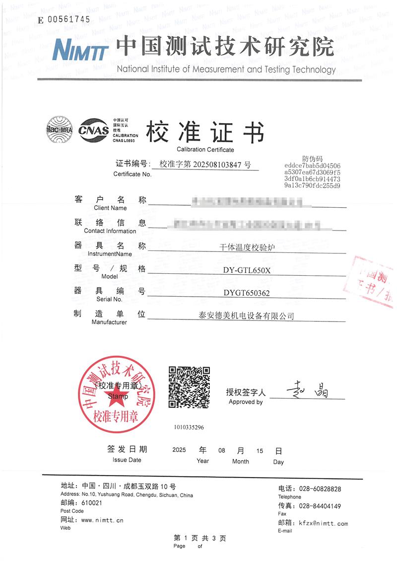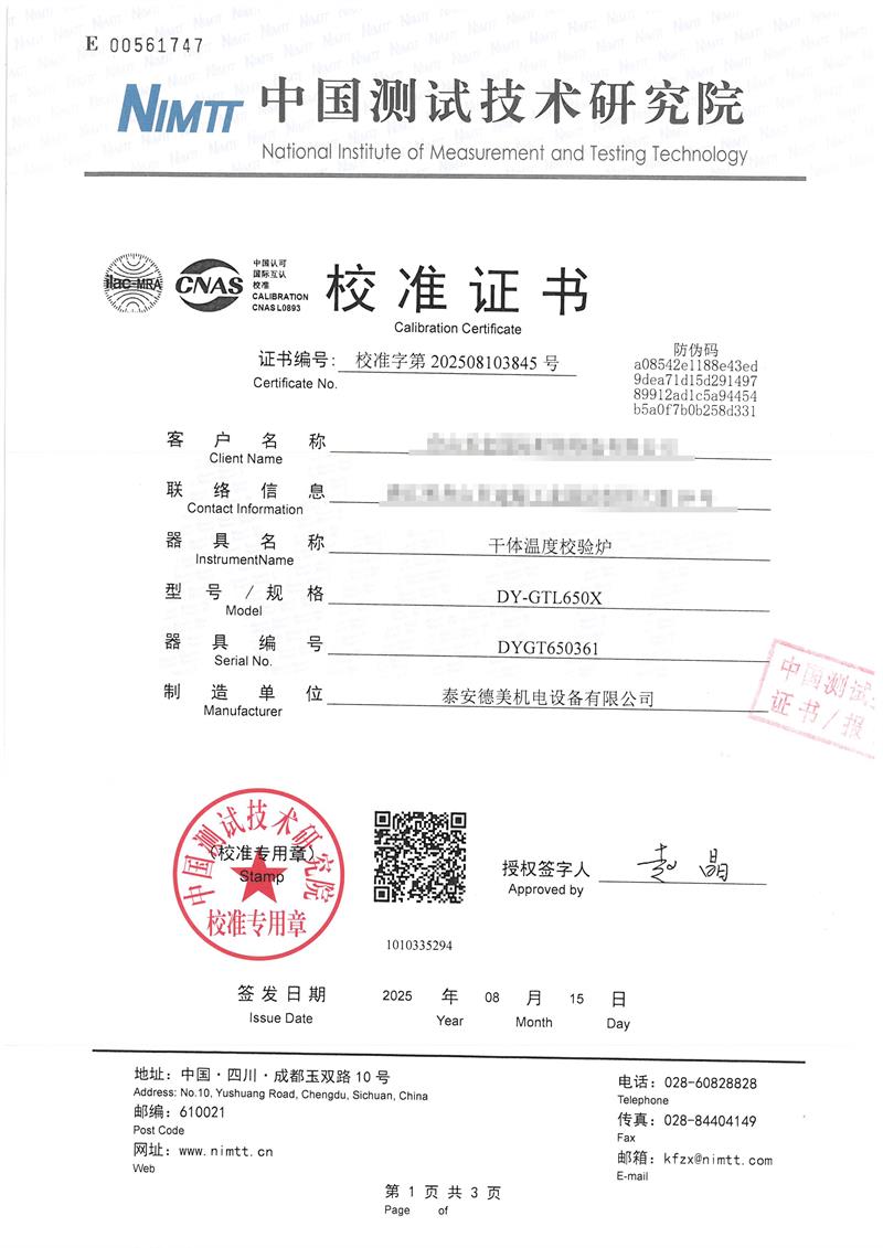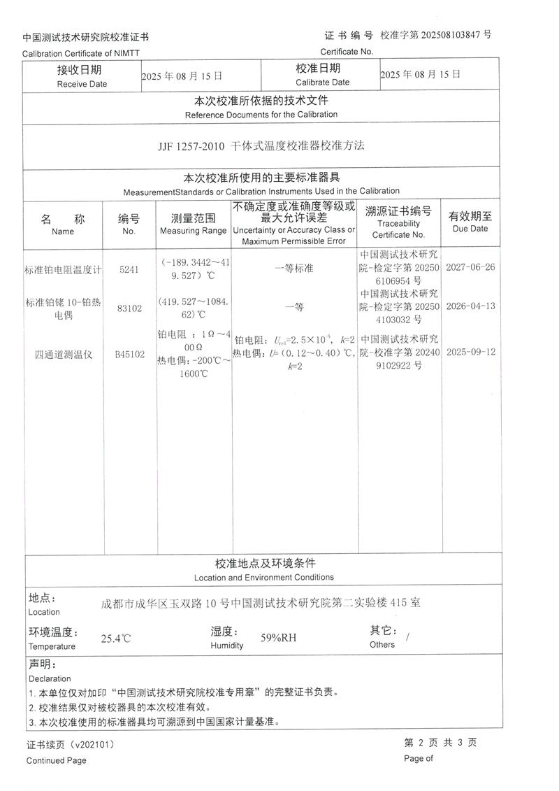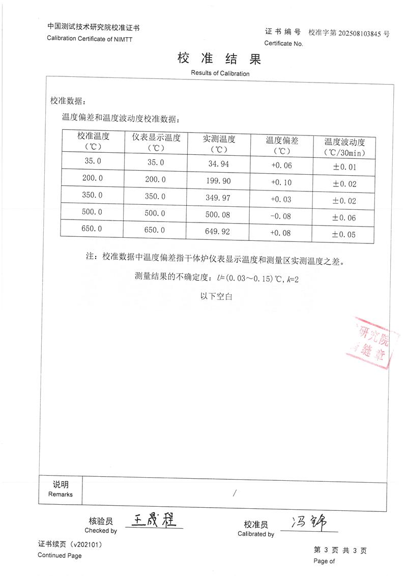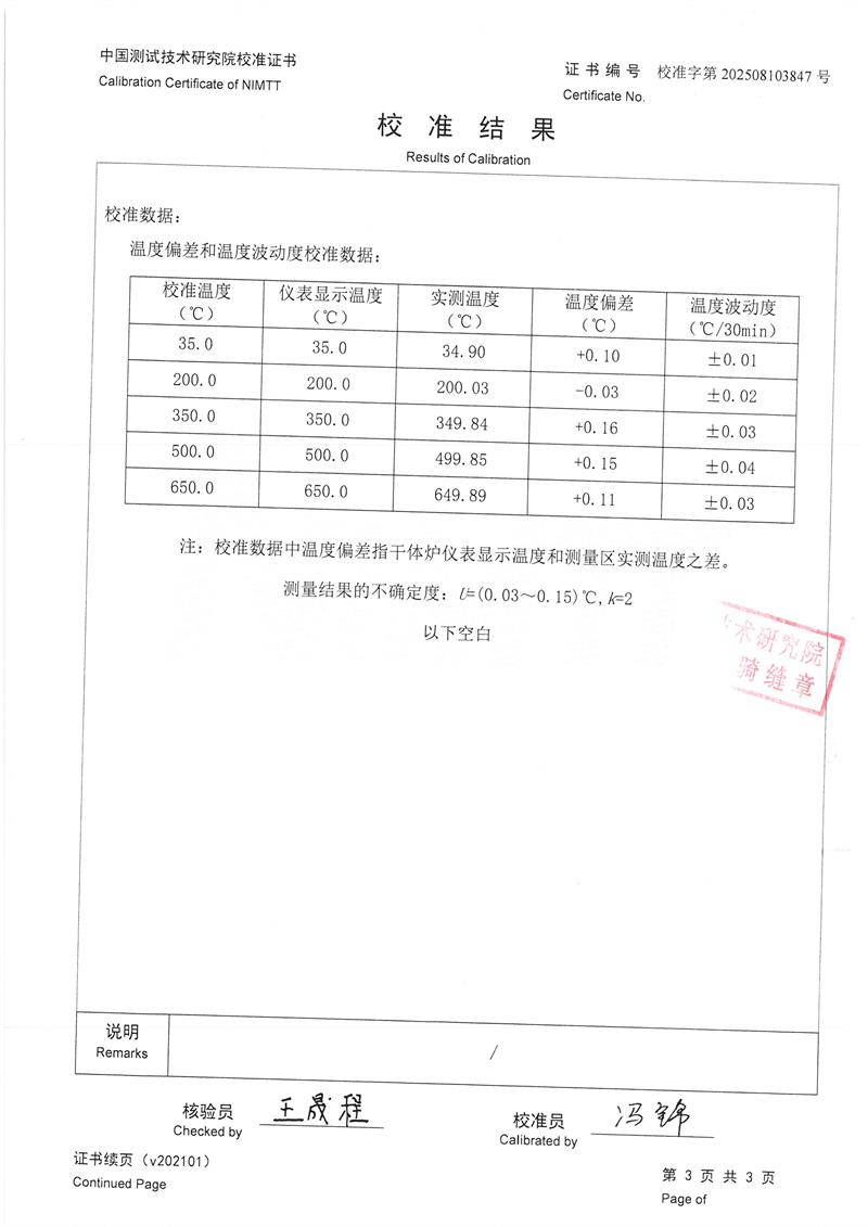 干體爐(室溫+5℃~650℃)校準(zhǔn)證書 2025-8-20 本文被閱讀 1879 次