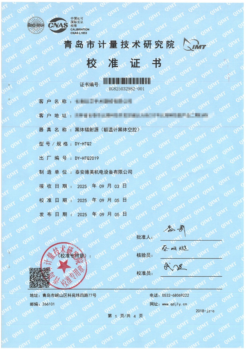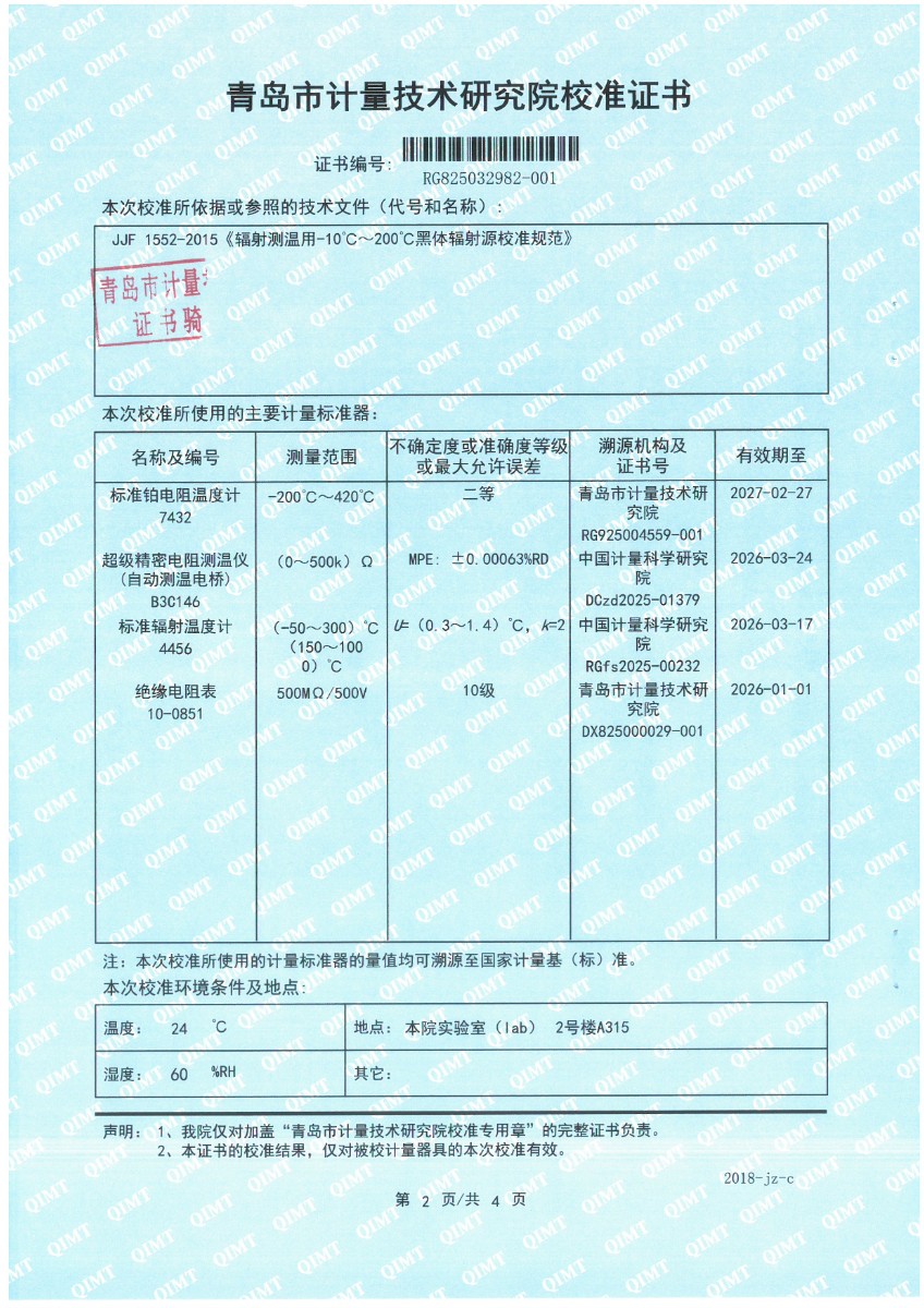 額溫計黑體空腔-校準證書 2025-9-23 本文被閱讀 1147 次