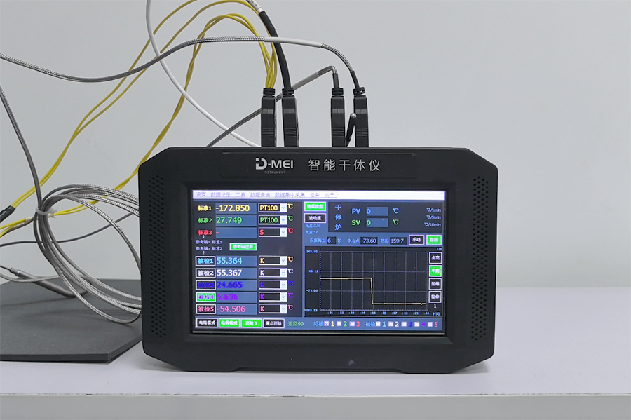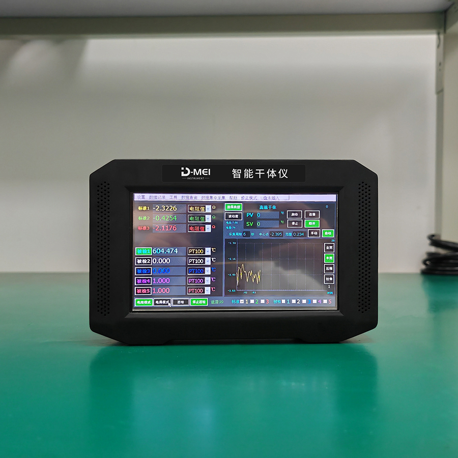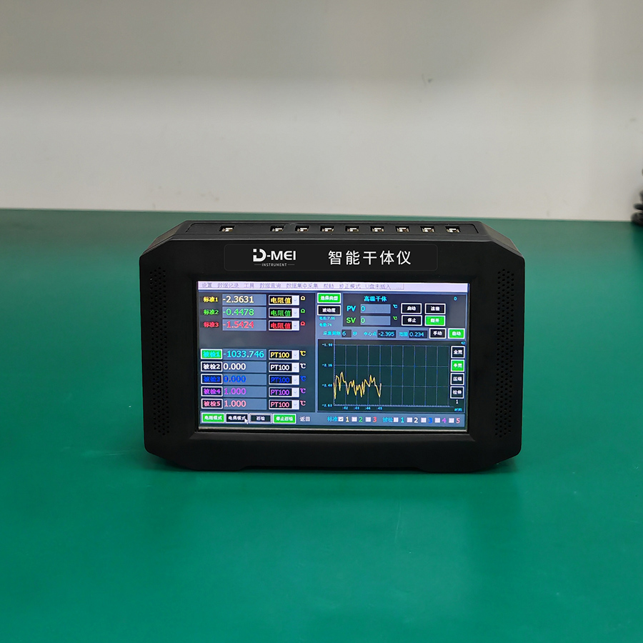 DY-CTRE100智能干體儀是公司對于各種低、中、高溫干體爐校準(zhǔn)溫度傳感器設(shè)計,智能干體儀可同時采集3支標(biāo)準(zhǔn)鉑電阻溫度計(Pt25)或1支標(biāo)準(zhǔn)熱電偶溫度計以及5支被檢溫度傳感器的溫度值、電阻值及波動曲線,通道采集方式為巡檢,也可以手動切換通道。設(shè)備可切換電阻模式、電偶模式。設(shè)備可配套干體爐、標(biāo)準(zhǔn)傳感器、備檢傳感器,配備可實現(xiàn)小型上位機設(shè)置,實時控制干體爐溫度設(shè)置、被檢標(biāo)準(zhǔn)器、被檢傳感器當(dāng)前溫度值、電阻值、波動度曲線。