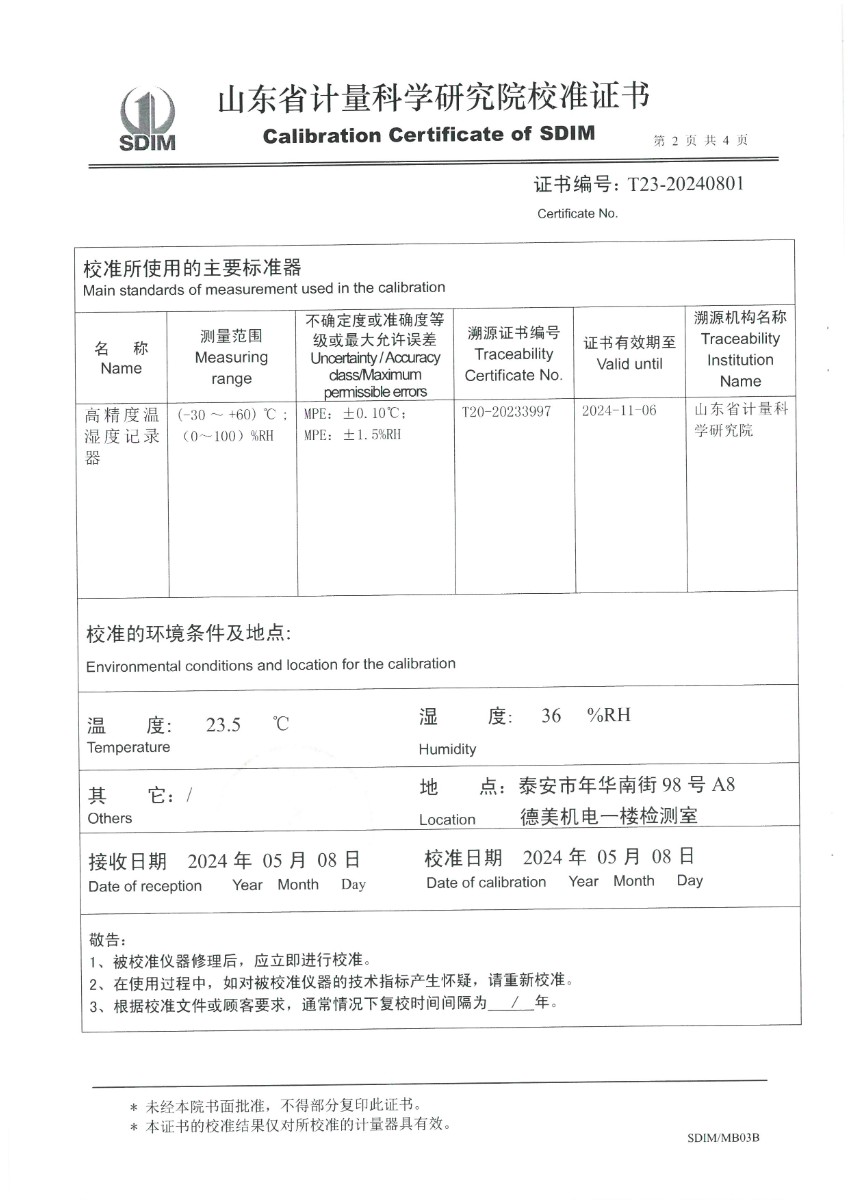 溫濕度檢定箱校準(zhǔn)證書 2024-5-11 本文被閱讀 7269 次