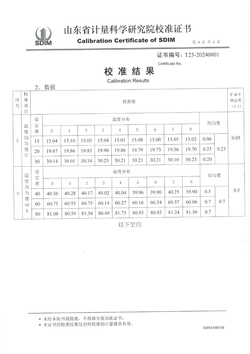 溫濕度檢定箱校準(zhǔn)證書