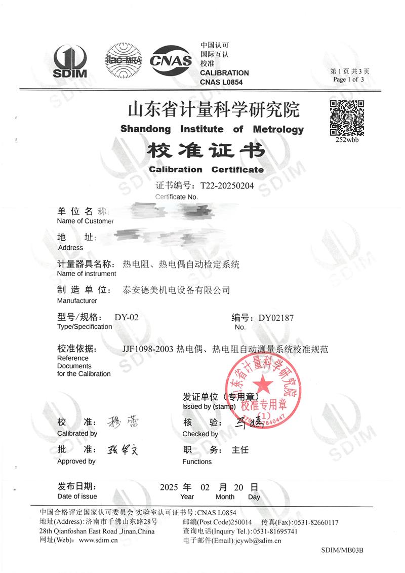 熱電阻、熱電偶自動檢定系統(tǒng)校準證書 2025-2-26 本文被閱讀 4292 次
