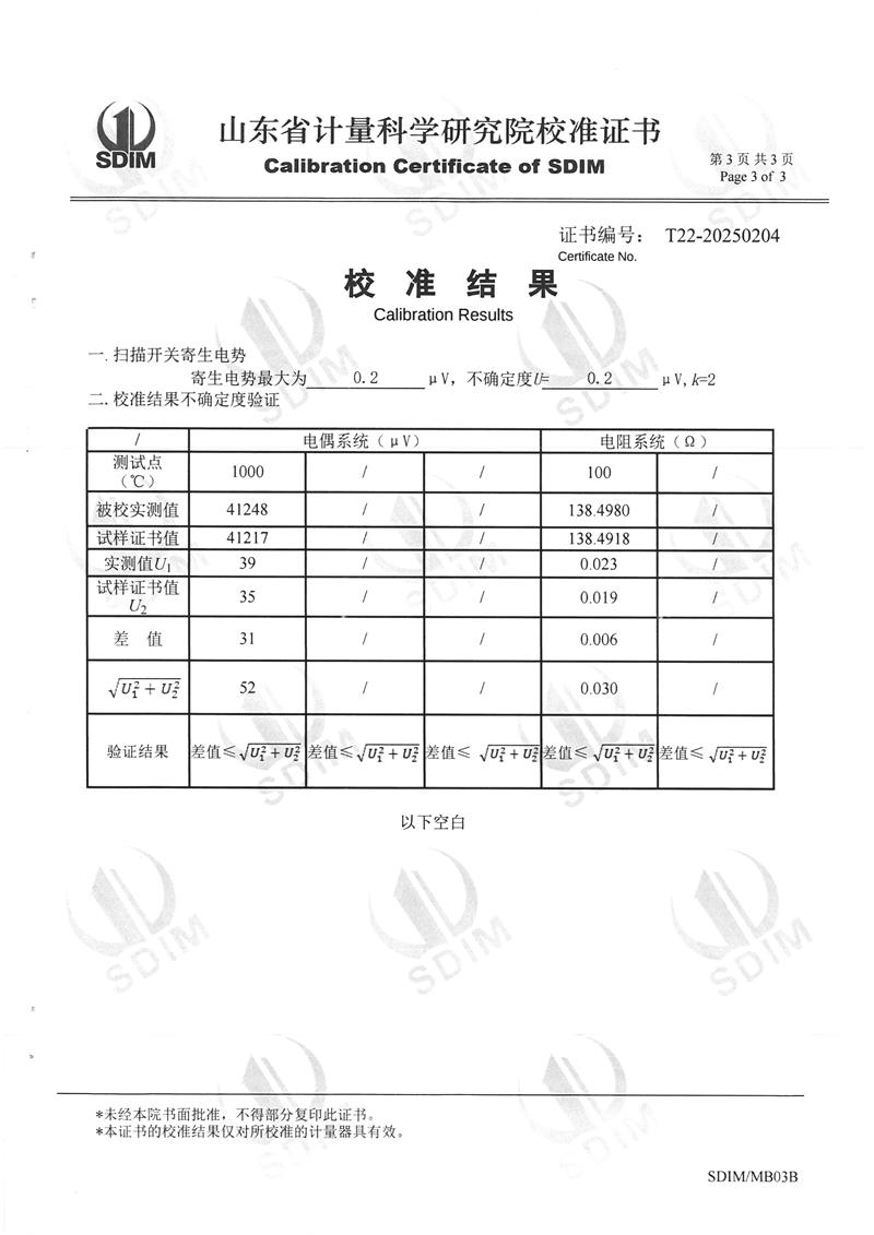 熱電阻、熱電偶自動檢定系統(tǒng)校準證書
