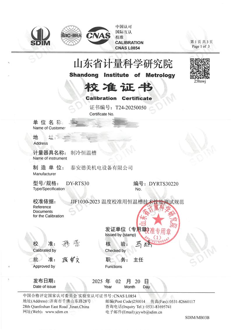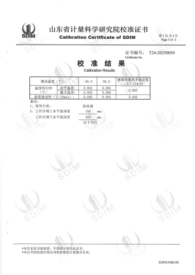 制冷恒溫槽(-30~95℃)校準證書 2025-2-26 本文被閱讀 5002 次