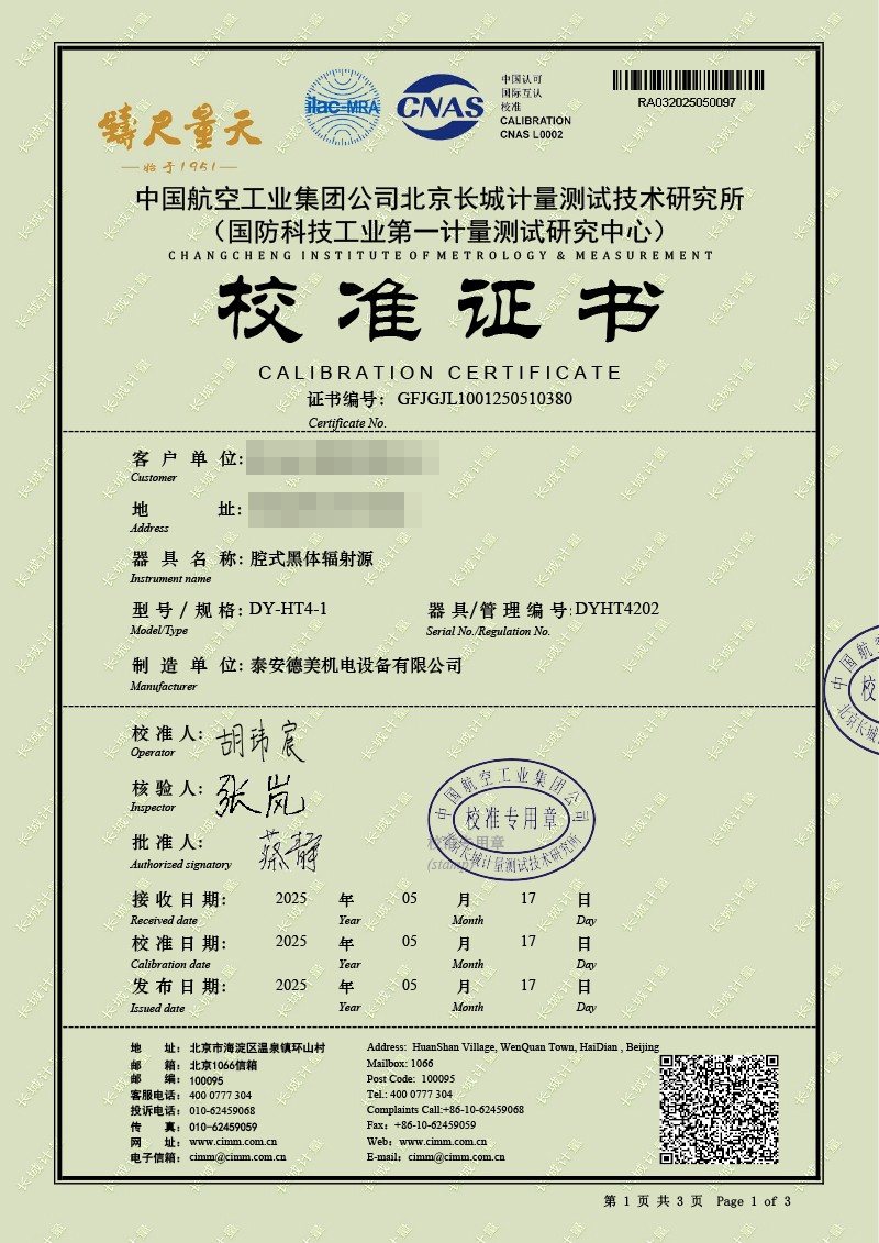 上一條:DY-XJY05手持式高精度溫濕度計(jì) | 下一條:超低溫面源黑體爐(-40-80℃)校準(zhǔn)證書 |