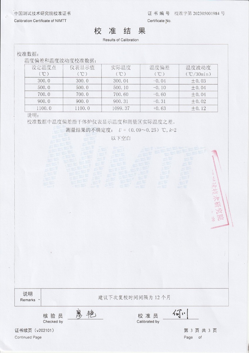 上一條:魯南中聯(lián)水泥有限公司 溫度校驗(yàn)儀 校準(zhǔn)證書(shū) | 下一條:便攜式干體爐(-30-150℃)校準(zhǔn)證書(shū) |