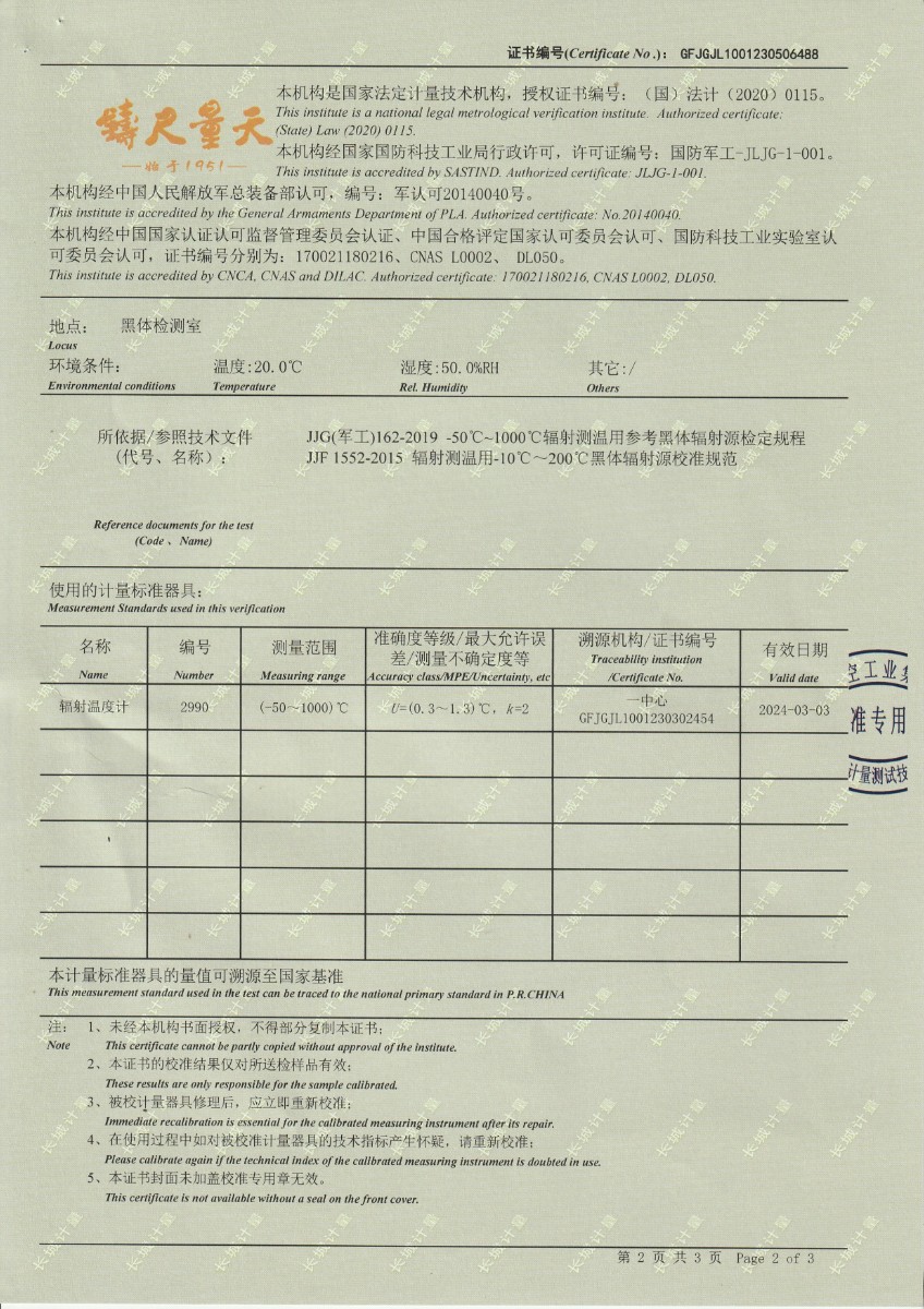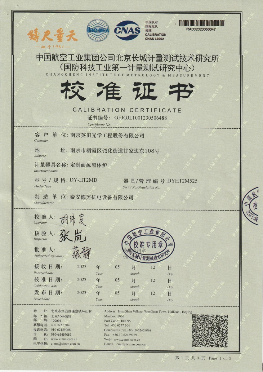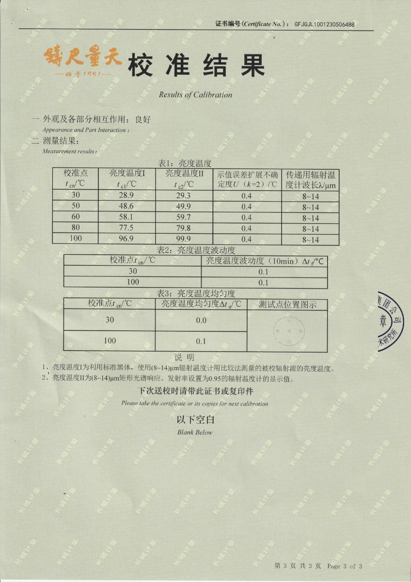 上一條:魯南中聯(lián)水泥有限公司 干體式溫度校準(zhǔn)器 校準(zhǔn)證書 | 下一條:便攜式干體爐(-30-150℃)校準(zhǔn)證書 |