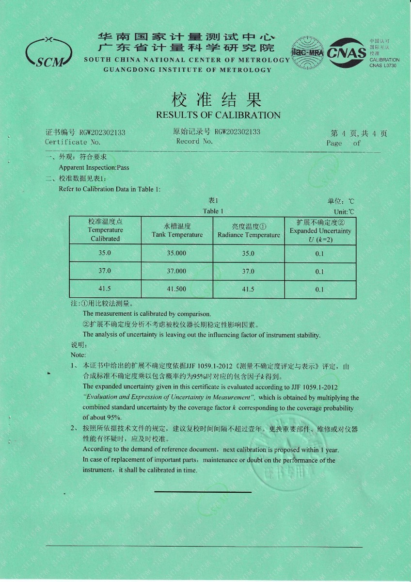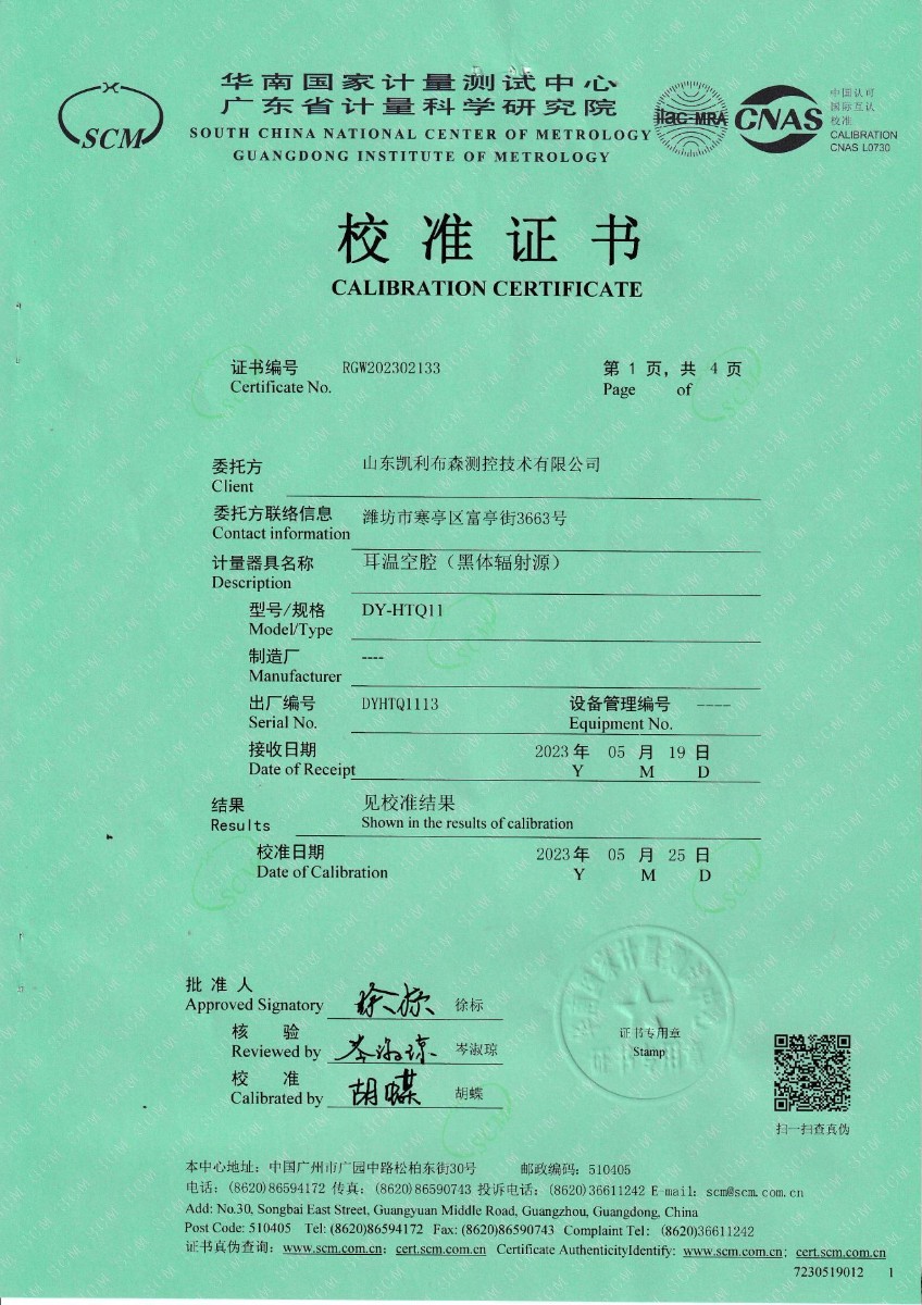 上一條:山東凱利布森測(cè)控技術(shù)有限公司 額溫空腔(黑體輻射源) 校準(zhǔn)證書 | 下一條:超低溫面源黑體爐(-40-80℃)校準(zhǔn)證書 |