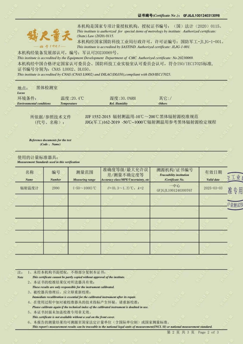 上一條:數(shù)字壓力表檢定證書(shū) | 下一條:超低溫面源黑體爐(-40-80℃)校準(zhǔn)證書(shū) |