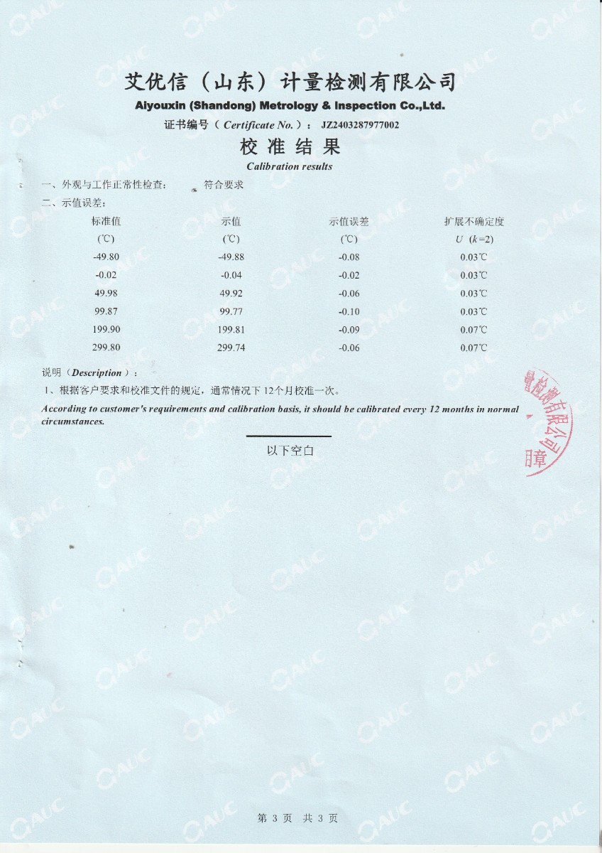 高精度數(shù)字溫度計(jì)校準(zhǔn)證書 2024-4-13 本文被閱讀 6089 次