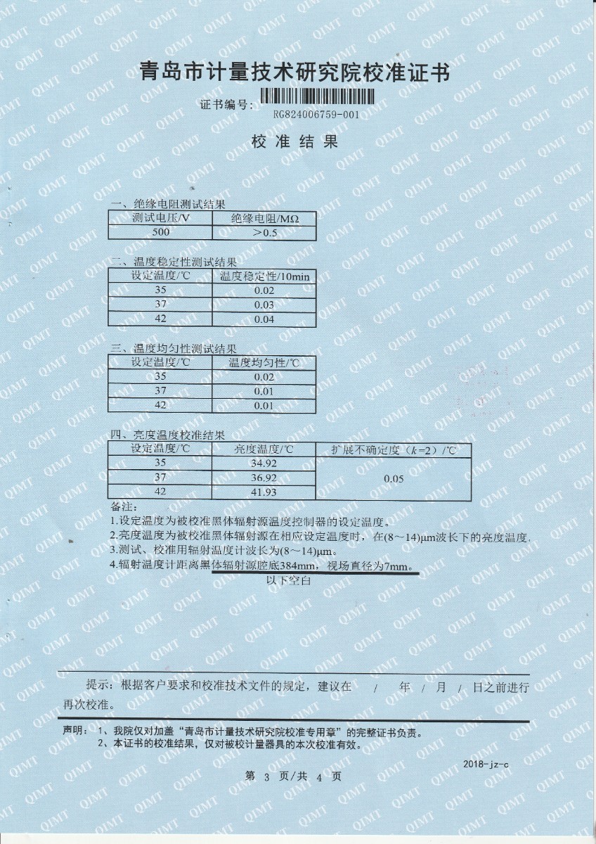 上一條:便攜式恒溫油槽校準(zhǔn)證書(shū) | 下一條:超低溫面源黑體爐(-40-80℃)校準(zhǔn)證書(shū) |