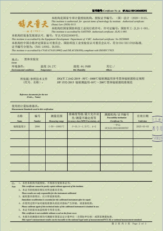 上一條:黑體輻射源(50-700℃)304所校準(zhǔn)證書下一條:超低溫面源黑體爐(-40-80℃)校準(zhǔn)證書