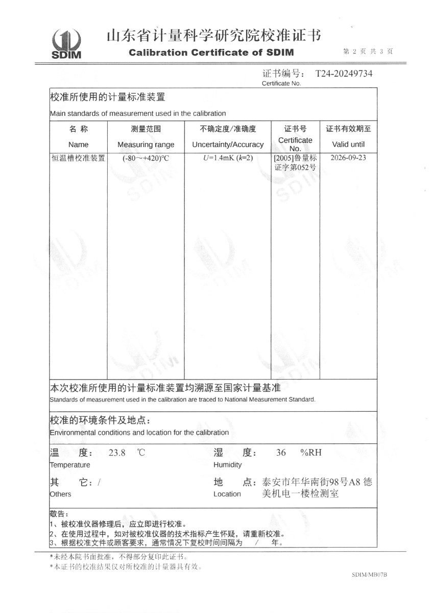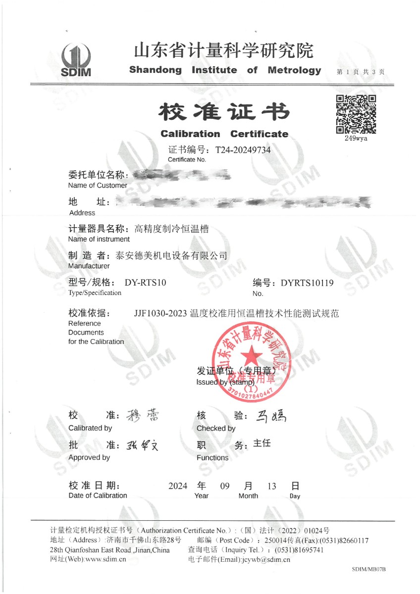高精度制冷恒溫槽(-10~95℃)校準(zhǔn)證書 2024-9-25 本文被閱讀 7584 次