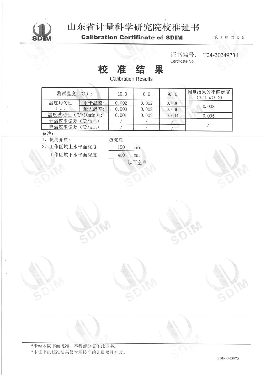 高精度制冷恒溫槽(-10~95℃)校準(zhǔn)證書