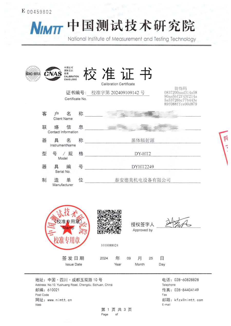 中溫腔式黑體校準(zhǔn)證書 2024-10-21 本文被閱讀 8465 次