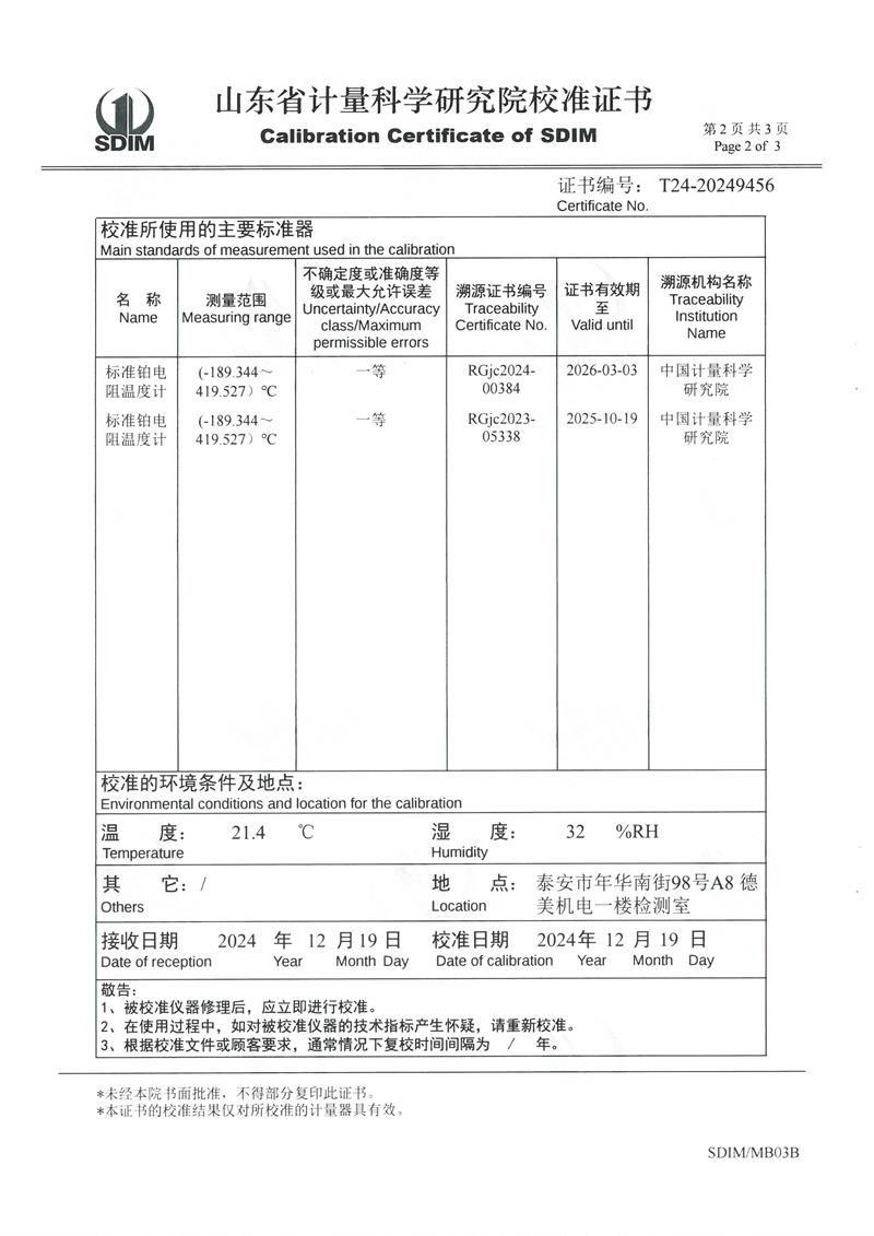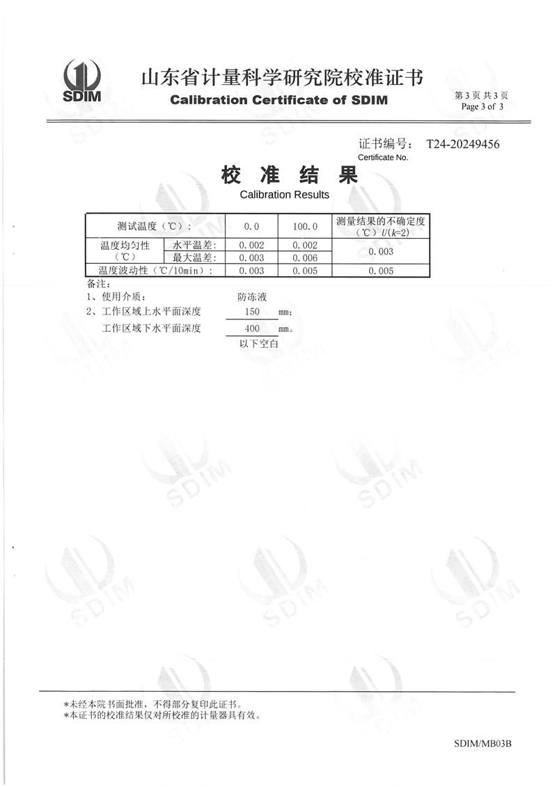 制冷恒溫槽(0~100℃)校準證書 2024-12-26 本文被閱讀 5701 次