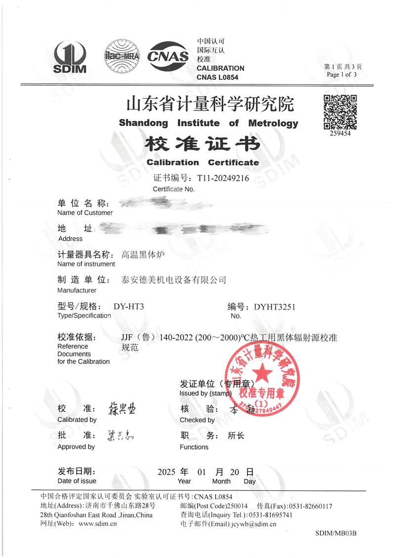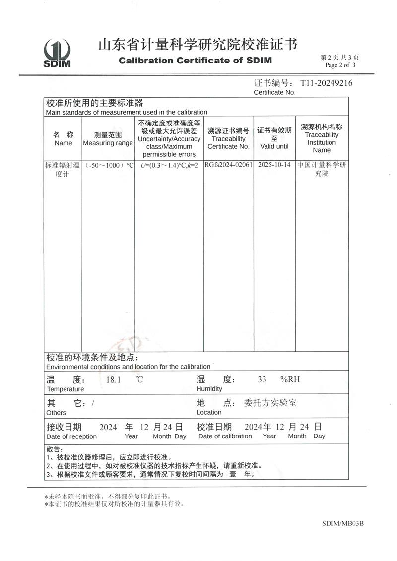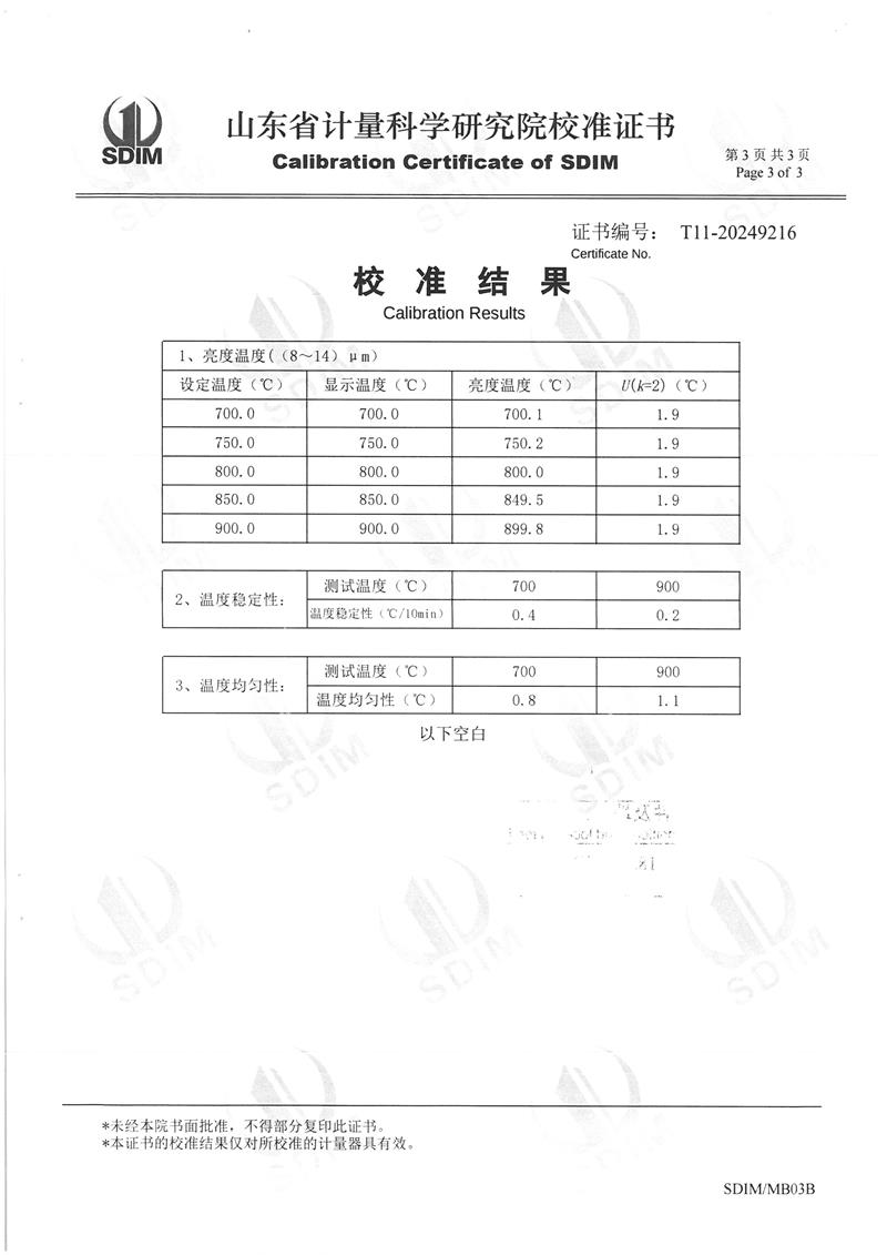 高溫黑體爐(300℃~1200℃)校準證書 2025-1-25 本文被閱讀 6318 次