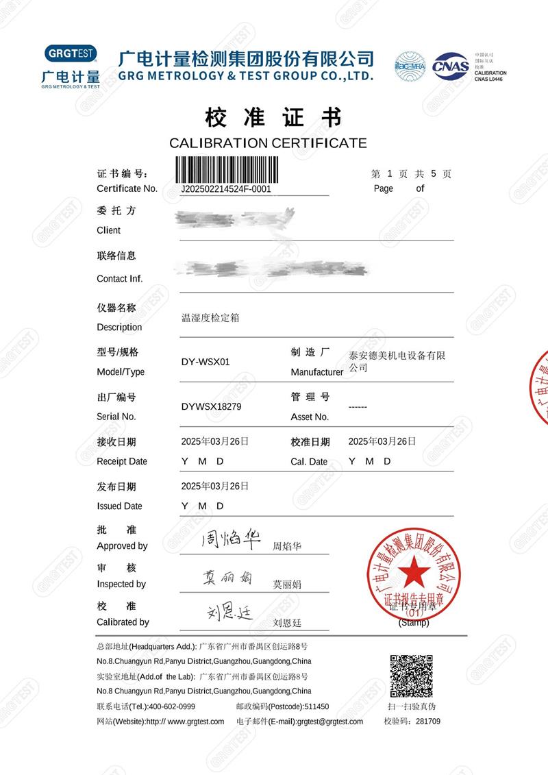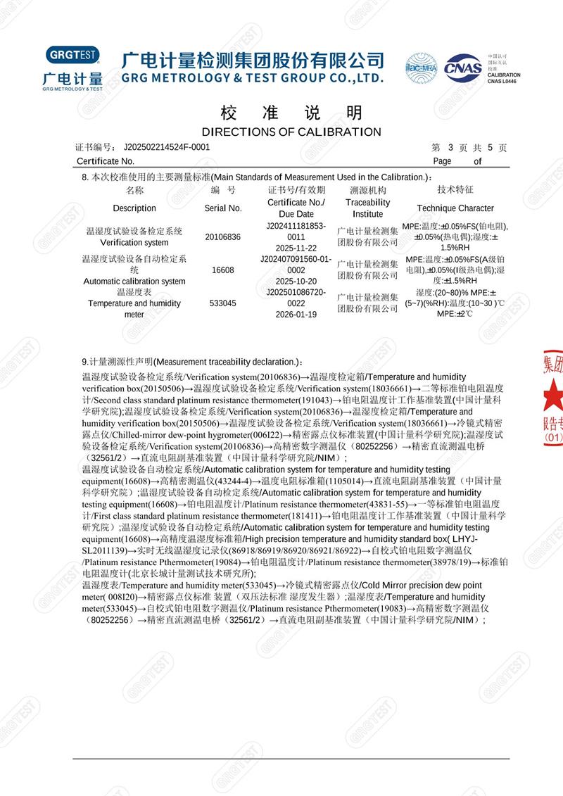 溫濕度檢定箱18279(-5~65℃)校準證書 2025-4-18 本文被閱讀 2522 次