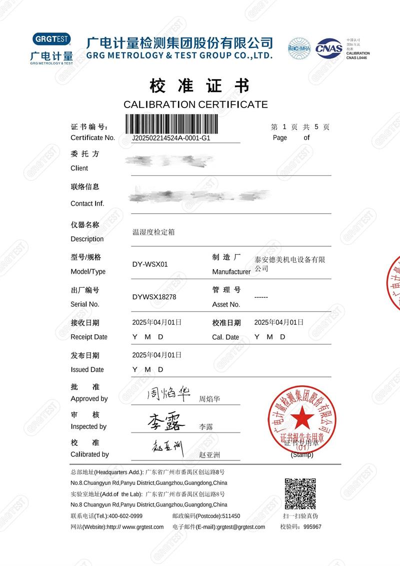 溫濕度檢定箱18278(-5~65℃)校準證書 2025-4-18 本文被閱讀 2767 次