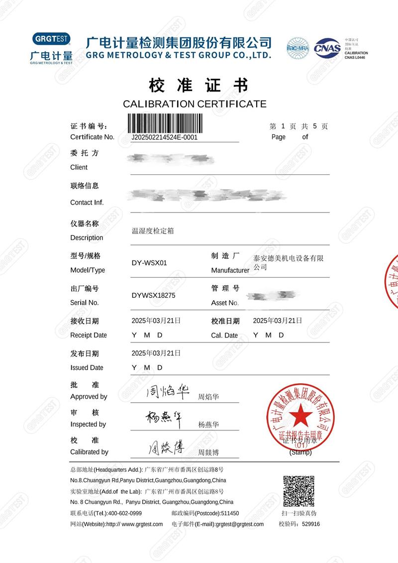 溫濕度檢定箱18275(-5~65℃)校準證書 2025-4-18 本文被閱讀 3516 次