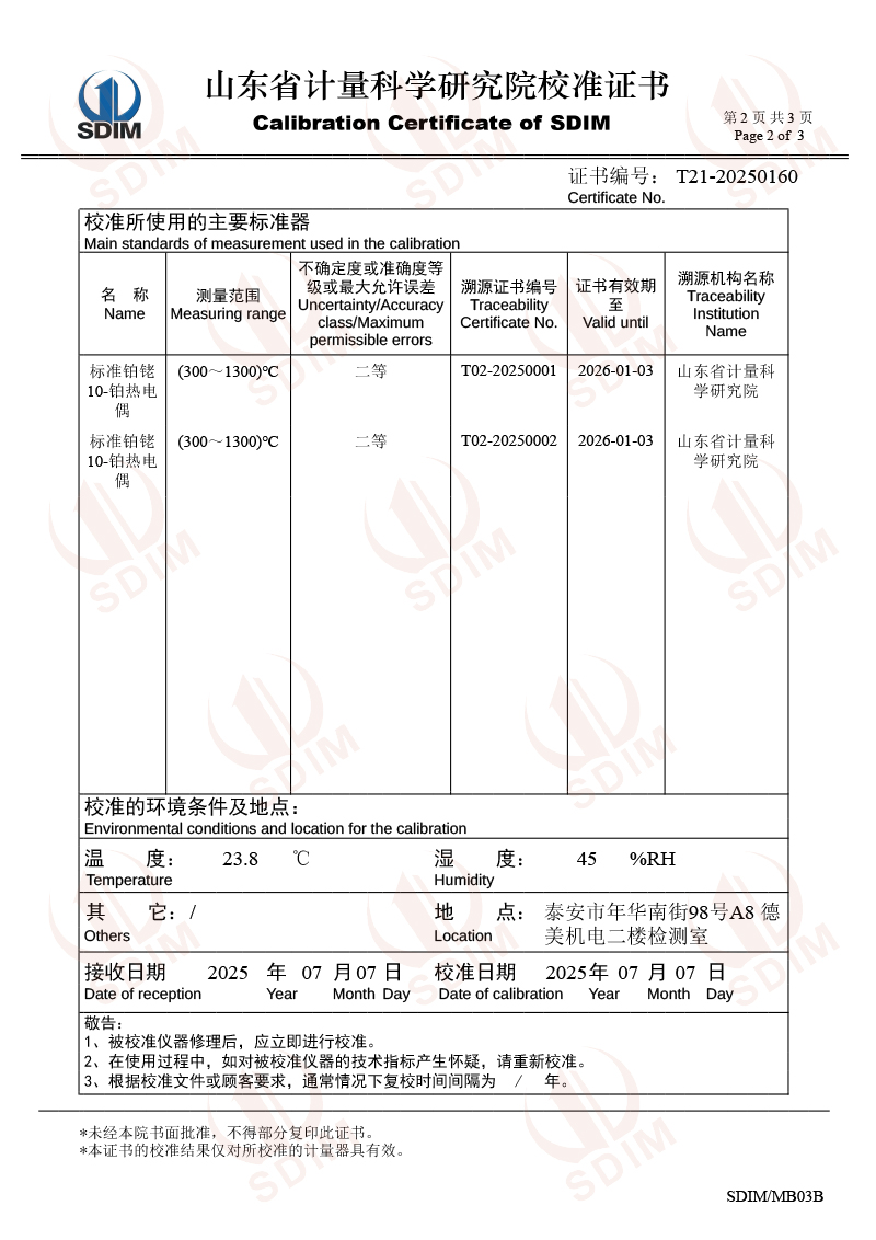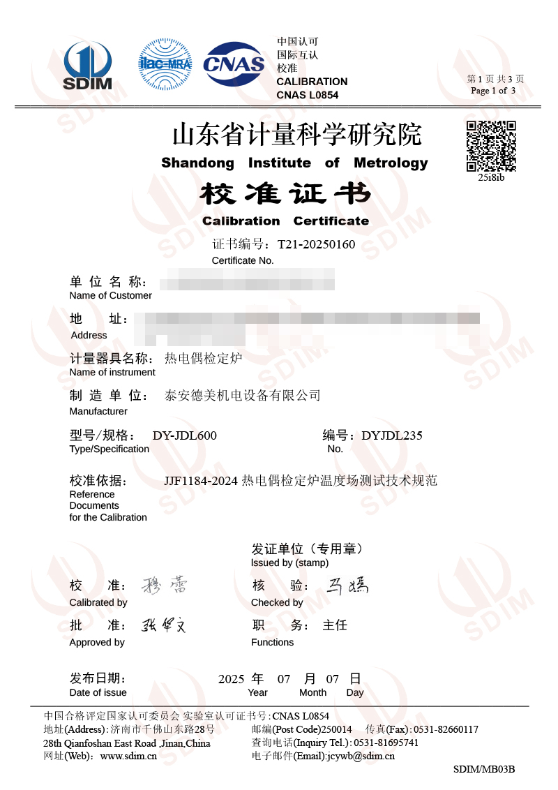 熱電偶檢定爐(300-1200℃)校準證書 2025-7-10 本文被閱讀 2473 次