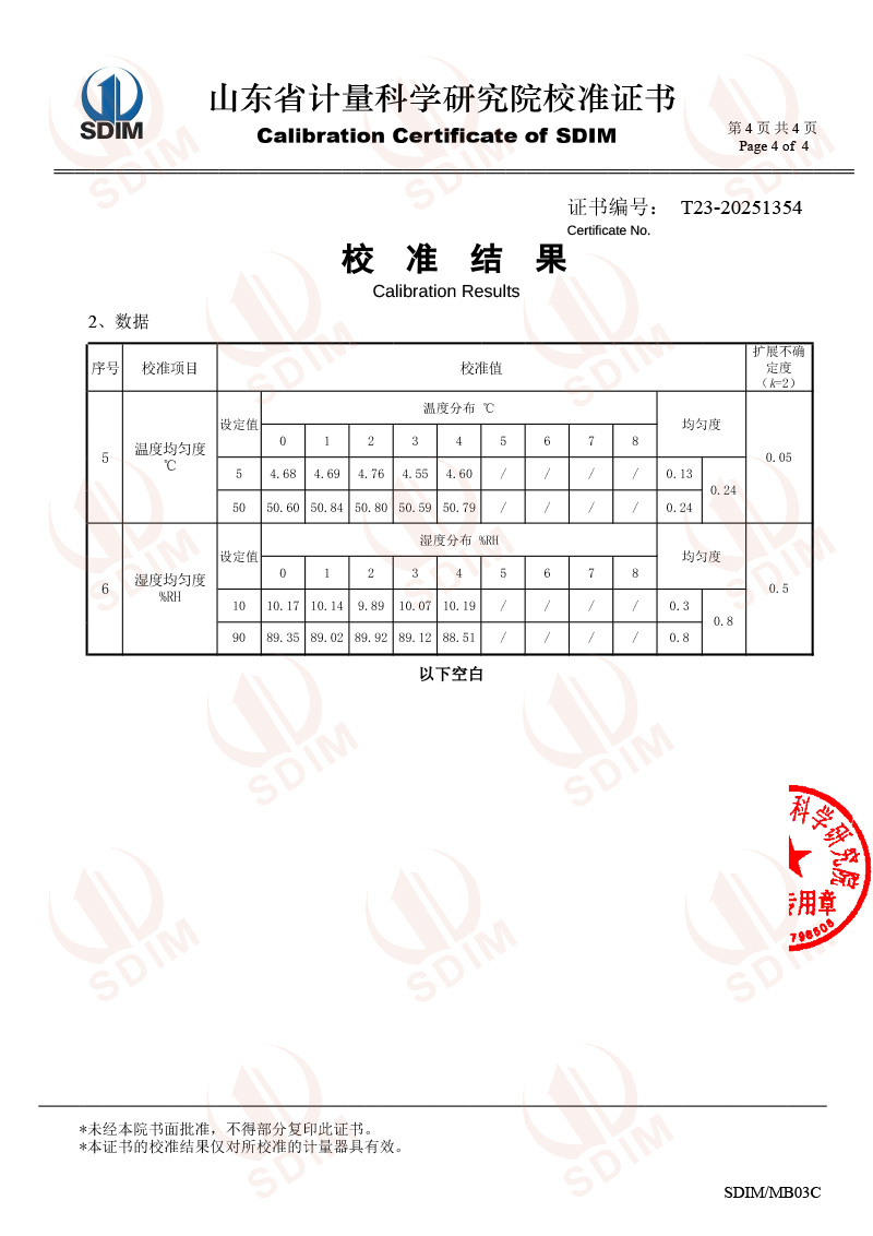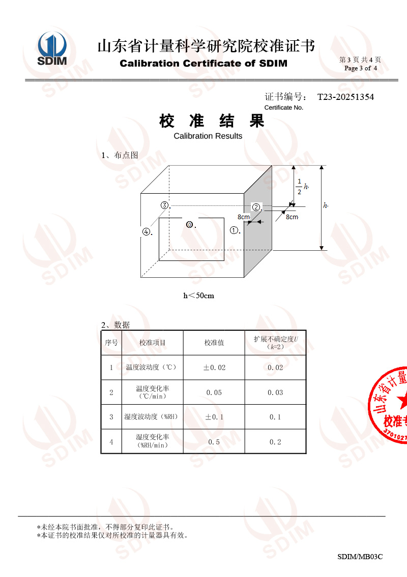 便攜溫濕度檢定箱校準(zhǔn)證書(shū)