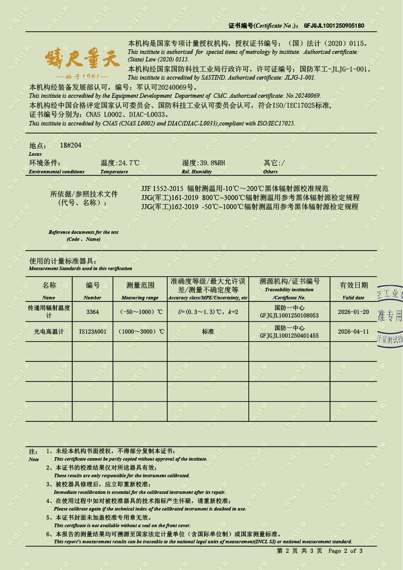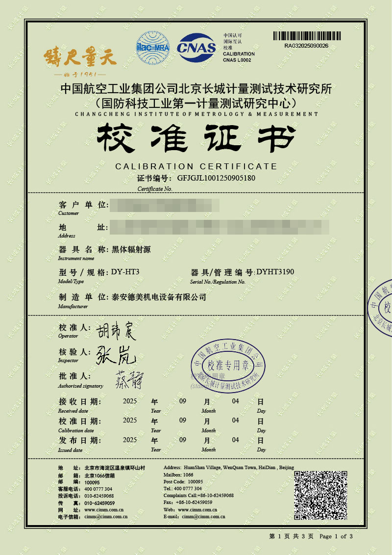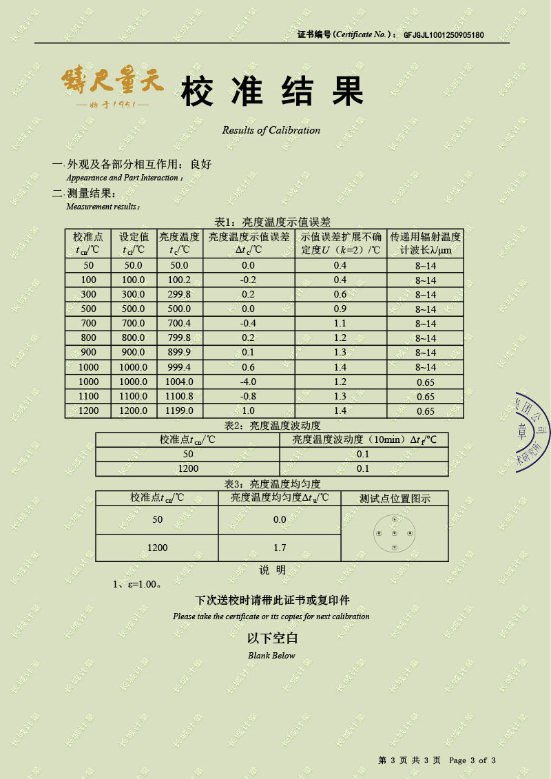 上一條:溫濕度檢定箱(-20-70℃)校準(zhǔn)證書 | 下一條:超低溫面源黑體爐(-40-80℃)校準(zhǔn)證書 |