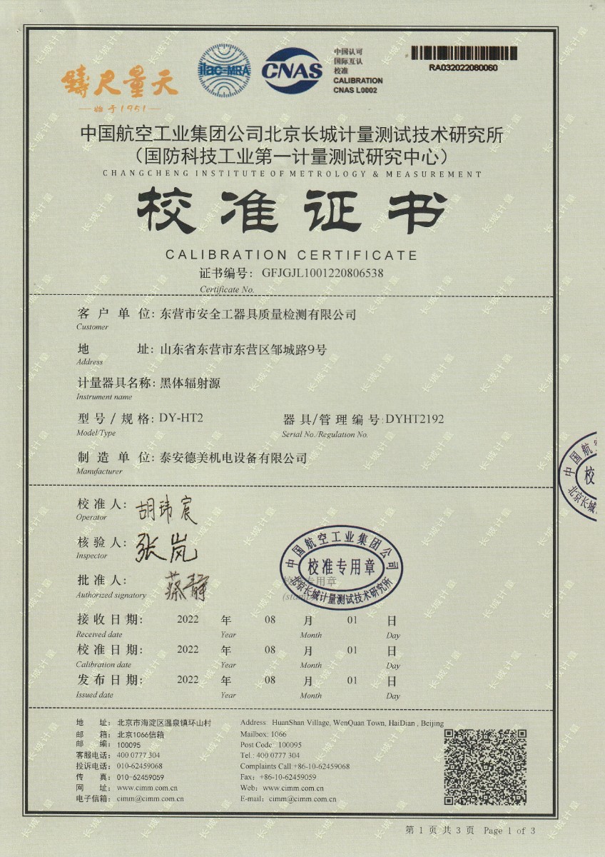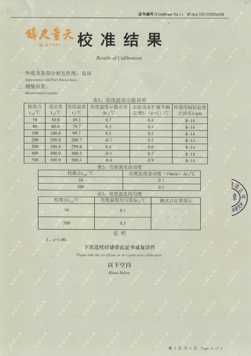 上一條:滁州捷泰新能源科技有限公司-面源黑體爐 | 下一條:超低溫面源黑體爐(-40-80℃)校準(zhǔn)證書 |