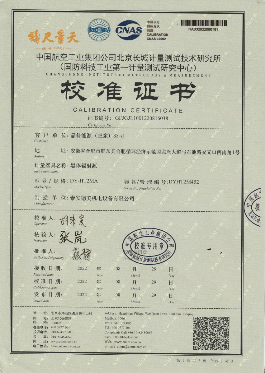晶科能源(肥東)公司-黑體輻射源 2022-9-5 本文被閱讀 12231 次