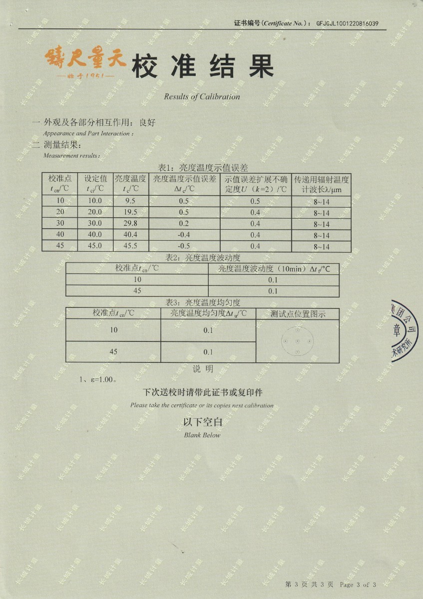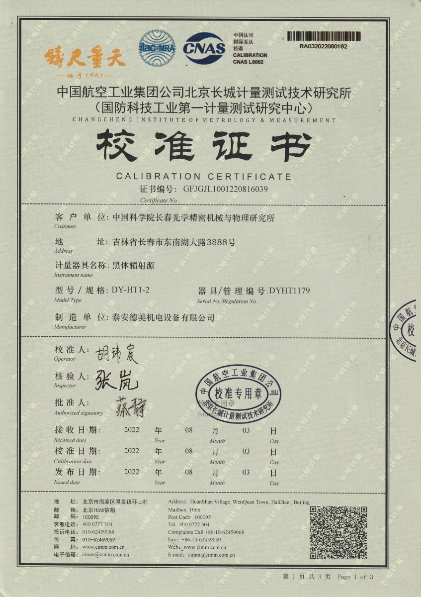 上一條:中國科學(xué)院長春光學(xué)精密機(jī)械與物理研究所-黑體爐DY-HT1-1 | 下一條:超低溫面源黑體爐(-40-80℃)校準(zhǔn)證書 |