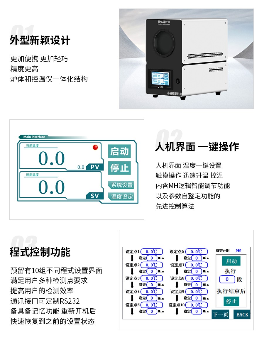 標(biāo)準(zhǔn)黑體作為標(biāo)準(zhǔn)輻射源,主要用于校準(zhǔn)輻射溫度計(jì)、紅外溫度計(jì)和輻射溫度傳感探測(cè)器。我公司目前具有先進(jìn)的黑體技術(shù),產(chǎn)品種類全、溫度范圍寬的黑體系列產(chǎn)品。產(chǎn)品體積小、重量輕、便于攜帶,不僅適合各級(jí)計(jì)量機(jī)構(gòu)實(shí)驗(yàn)室校準(zhǔn)輻射溫度計(jì)使用,同時(shí)可以用于現(xiàn)場(chǎng)校準(zhǔn)。