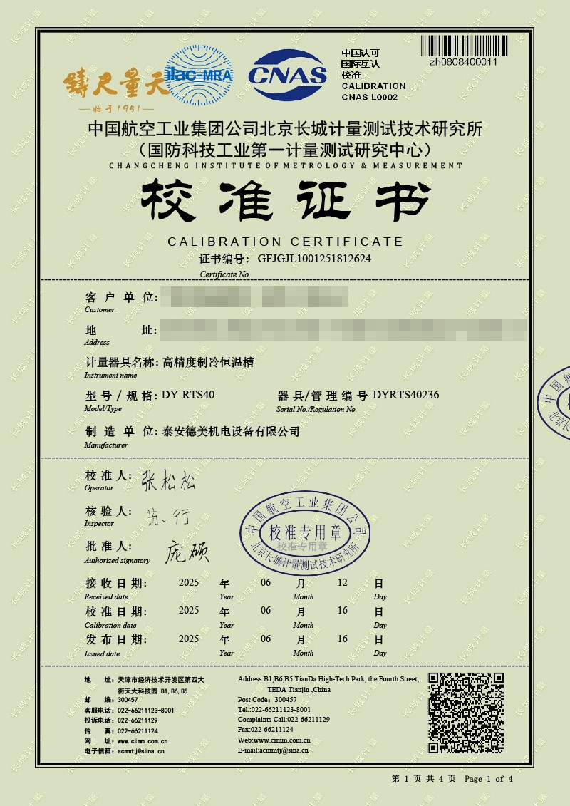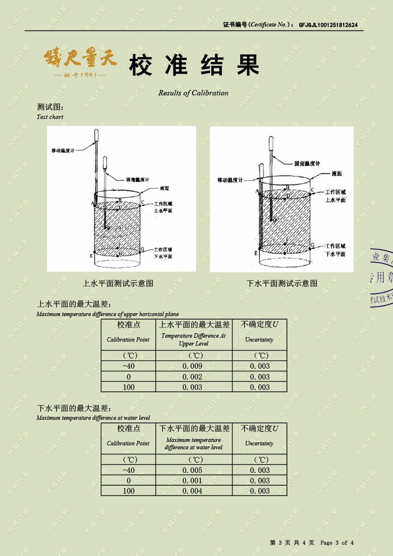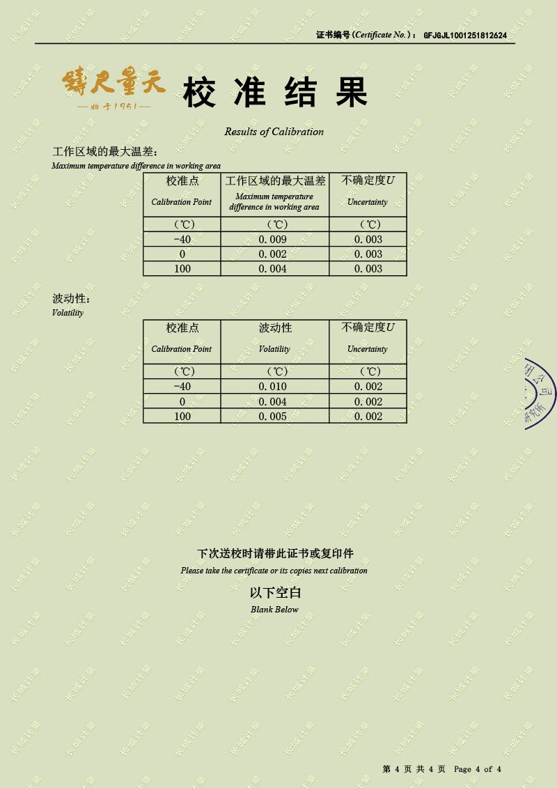 高精度制冷恒溫(-40-100℃)校準(zhǔn)證書