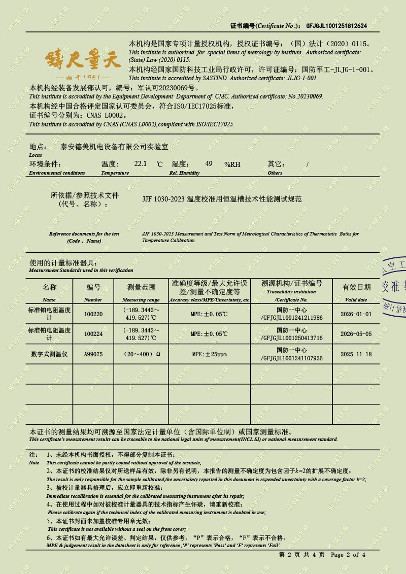 高精度制冷恒溫(-40-100℃)校準(zhǔn)證書 2025-6-25 本文被閱讀 2224 次