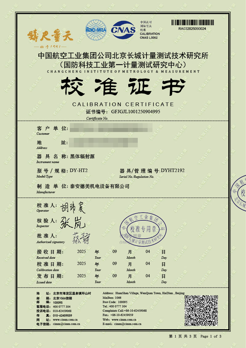 黑體輻射源(50-500℃)校準(zhǔn)證書 2025-9-12 本文被閱讀 1003 次