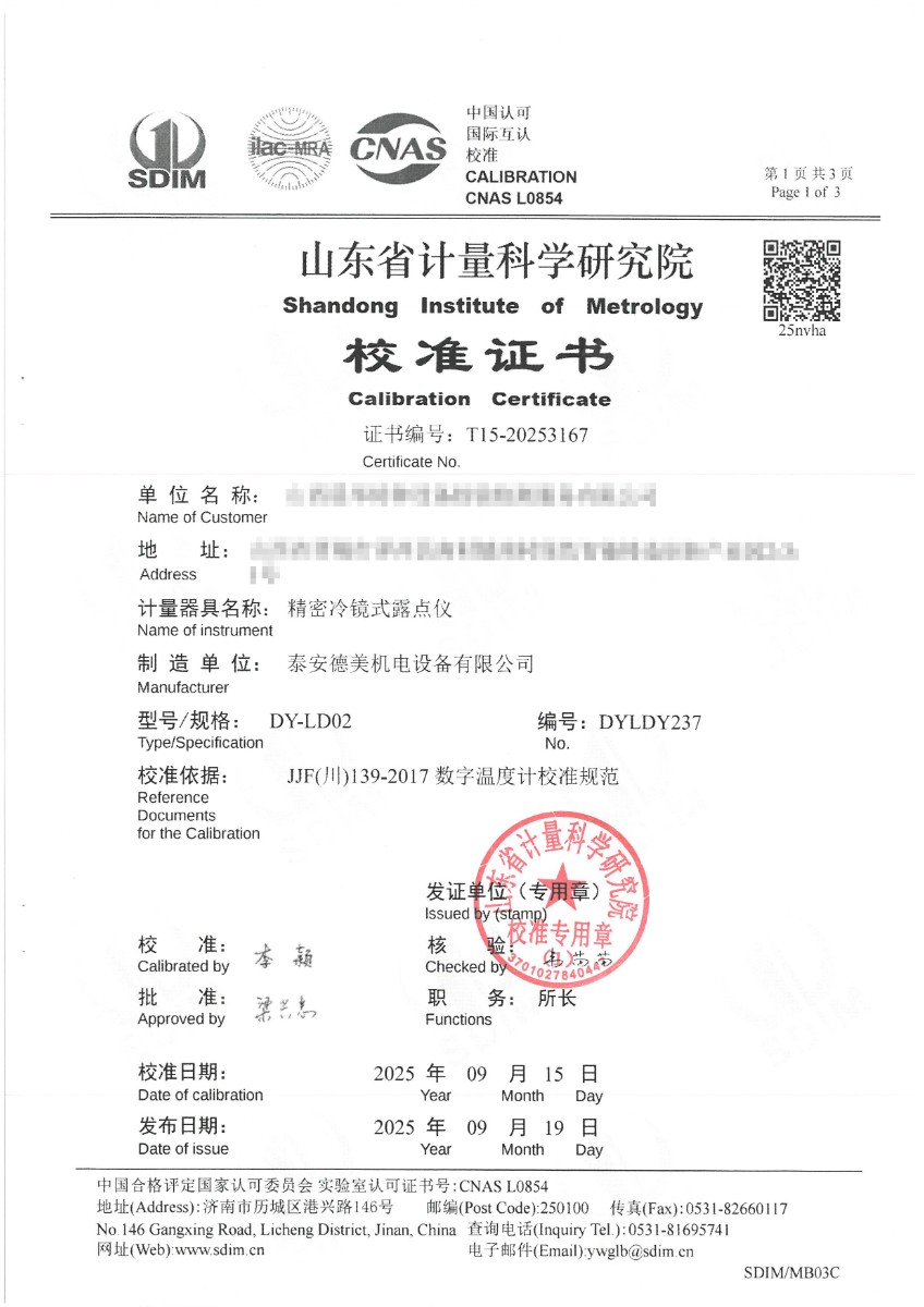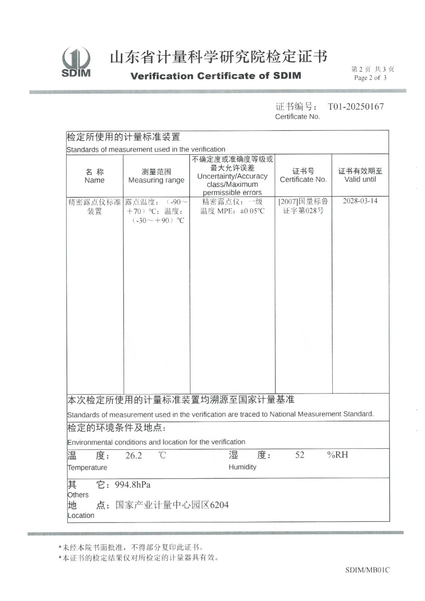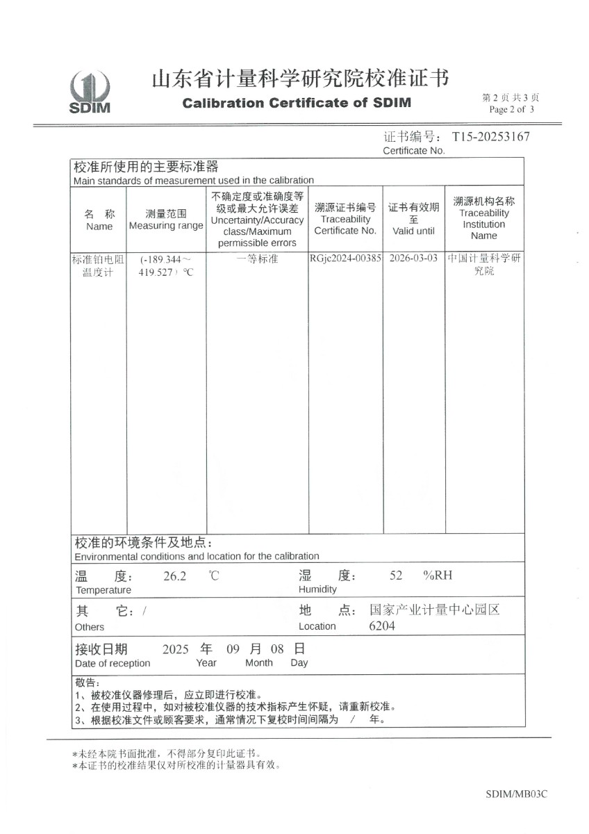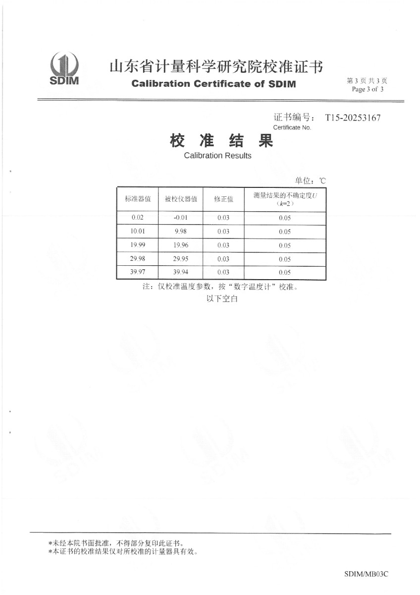 上一條:高精度數(shù)字溫度計(-20-100℃)校準(zhǔn)證書 | 下一條:超低溫面源黑體爐(-40-80℃)校準(zhǔn)證書 |