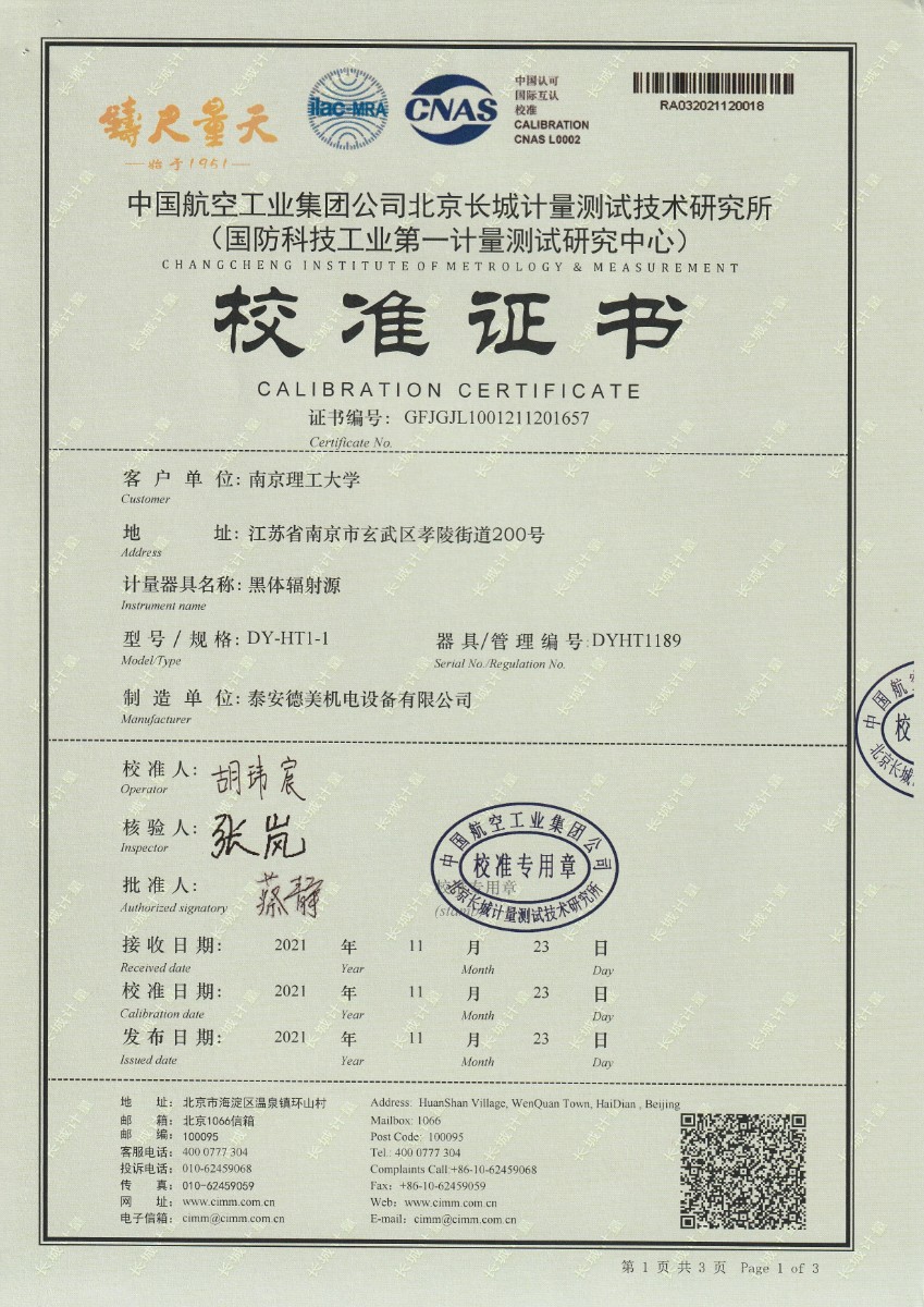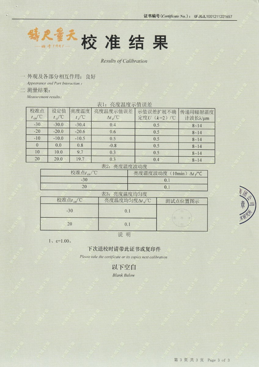 | 上一條:南京理工大學(xué)-黑體輻射源校準(zhǔn)證書25℃ | 下一條:便攜式干體爐(-30-150℃)校準(zhǔn)證書 |