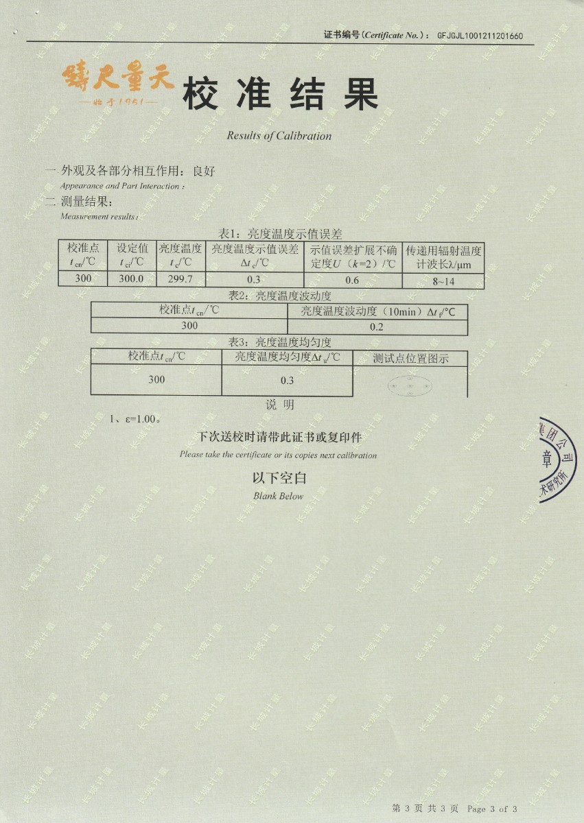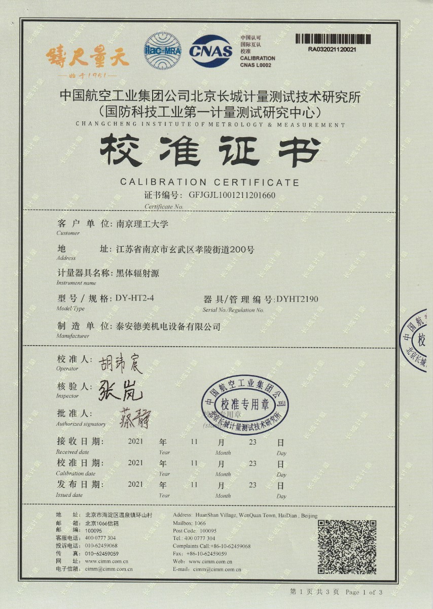 南京理工大學-黑體輻射源校準證書300℃ 2021-12-4 本文被閱讀 14000 次