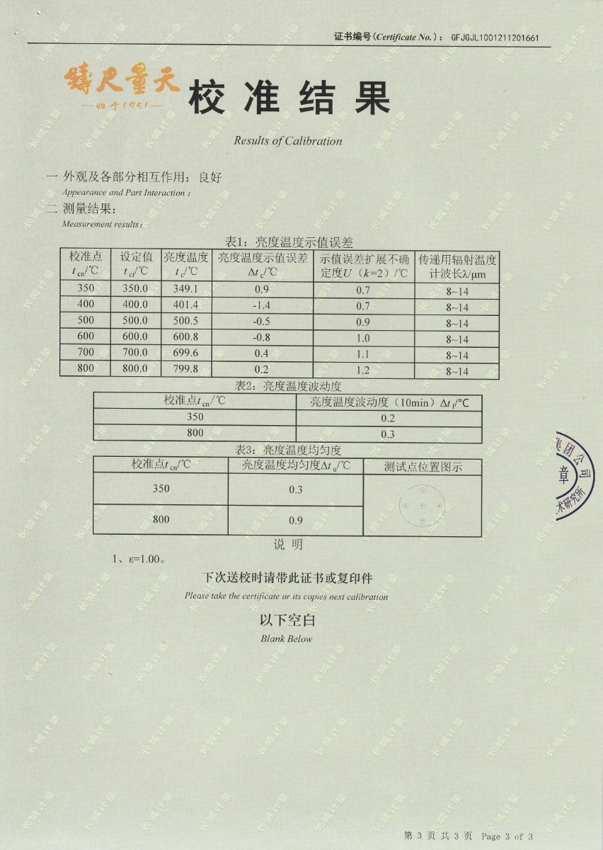 上一條:南京理工大學(xué)-黑體輻射源校準(zhǔn)證書300℃ | 下一條:便攜式干體爐(-30-150℃)校準(zhǔn)證書 |