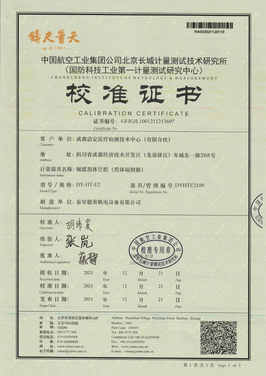 成都潔定醫(yī)療檢測技術(shù)-額溫黑體空腔 2022-1-4 本文被閱讀 10319 次