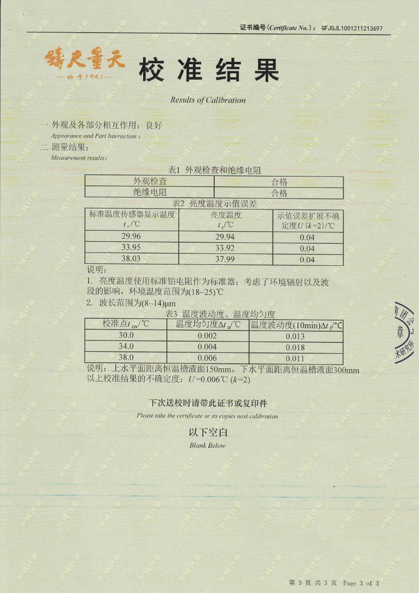 上一條:安徽晶科能源有限公司-黑體輻射源下一條:超低溫面源黑體爐(-40-80℃)校準證書