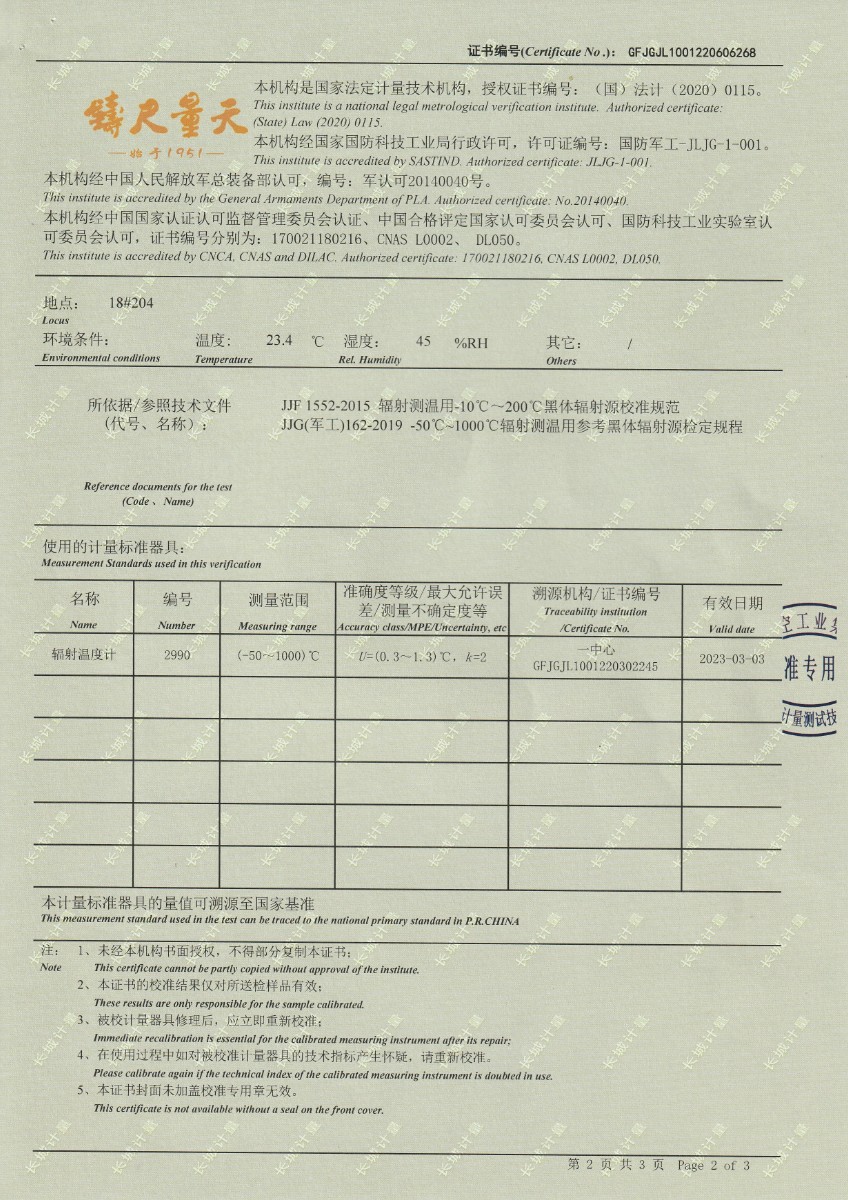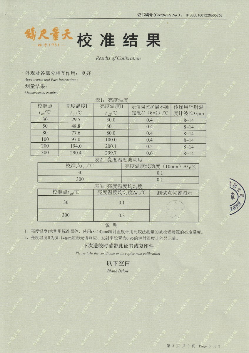 上一條:中睿(天津)檢驗檢測有限公司-冷鏡式露點(diǎn)儀檢定證書 | 下一條:超低溫面源黑體爐(-40-80℃)校準(zhǔn)證書 |